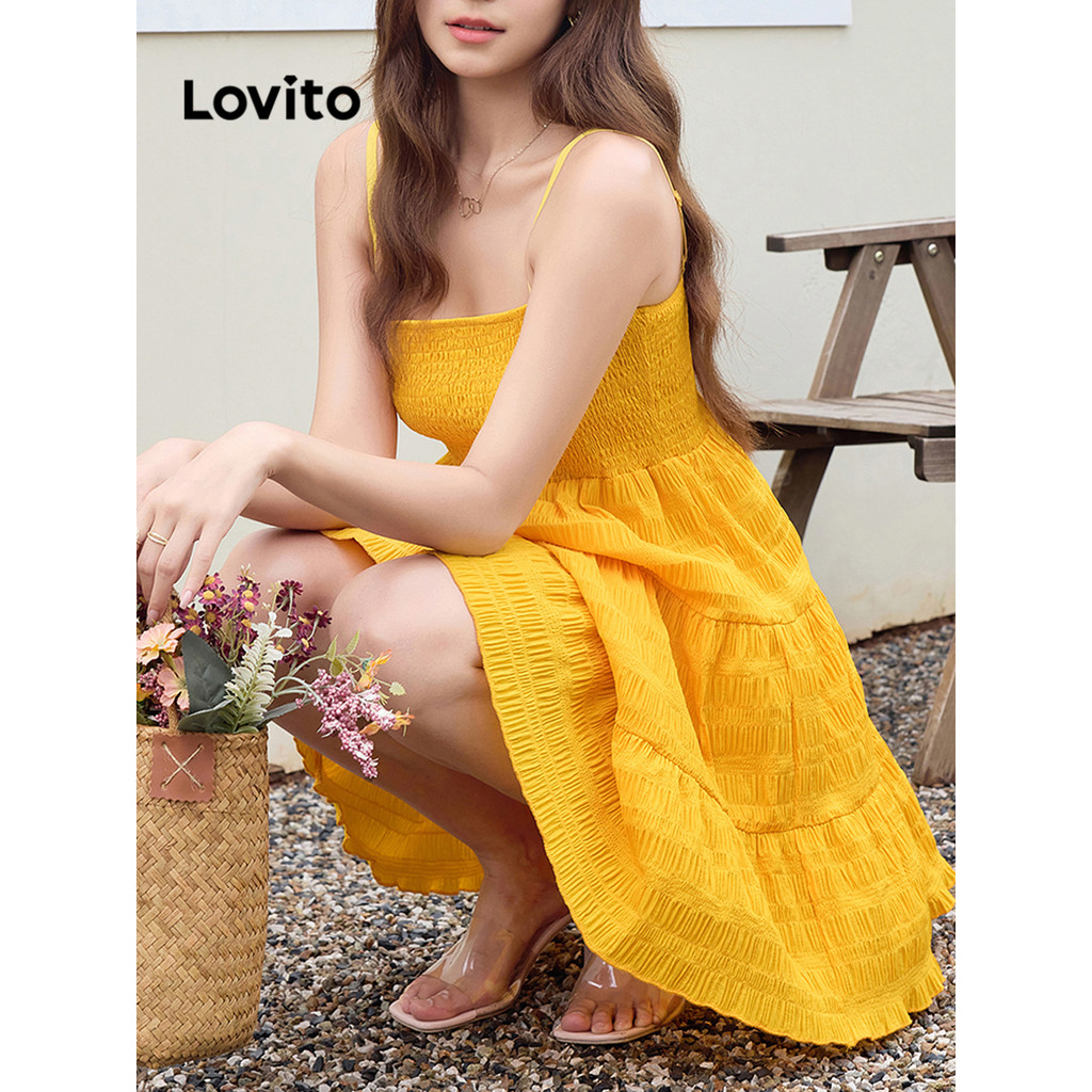 ✅DESTAQUES -❤️Cânhamo Ruffle -❤️Camada Em Camadas -❤️Smocked -❤️Fluído ✅DESCRIÇÕES Padrão: Simples Estilo: Boho Tipo De Vestido: Flounce Mais Tamanho: Não Material: Poliéster Composição: 100%Poliéster Tipo Fit: Ajuste Regular Transparente: Não Esticamento: Não Esticar Região Da Origem: País Da China ✅PACOTE INCLUI 1X Vestido ✅APRESENTAÇÃO DO LOVITO Lovito é uma marca emergente que acredita no poder das meninas, comprometida com a oferta de escolhas de roupas elegantes e acessíveis para diferentes estilos, necessidades e identidades. Nós acreditamos que a moda deve ser divertida, liberadora e você sentemos ótimos. Depois de todos, o melhor acessório para qualquer aspecto é de autoconfiança. ✅NOTAS DE COMPRA Por favor, gentilmente, veja sua altura e a tabela de tamanhos antes de comprar. Há diferença de 2-3% de acordo com a medição manual. Todas as fotos de produtos desta loja são 100% tiro real. Due à luz e tela diferentes, uma diferença de cor sutil e erro real é normal. Siga nossa loja e Descubra novos itens e melhores negócios para você!! Se você tem qualquer pergunta, fale conosco e lhe enviará breve como necessário.😊