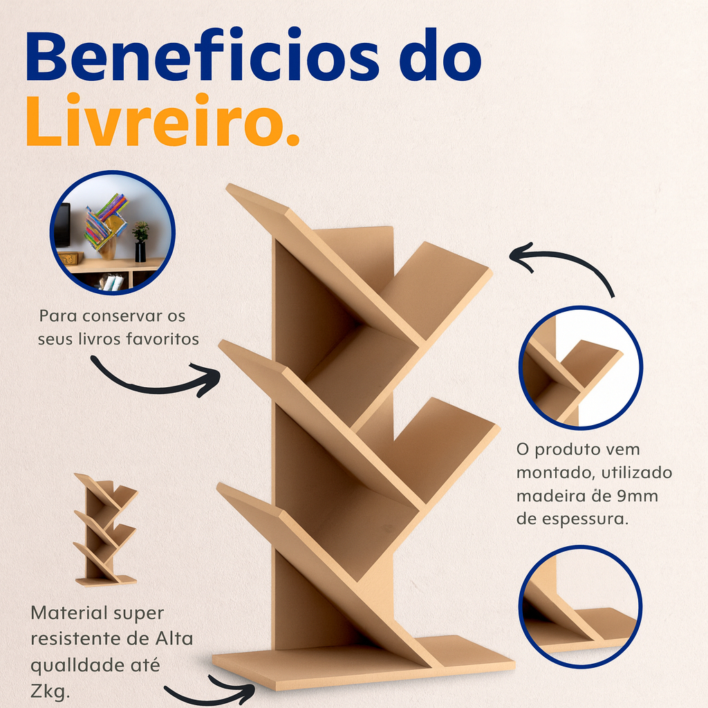 Livreiro Porta Livros Revistas Prateleira Mdf 9 mm Nicho Organizador Decorativo Mesa Estante