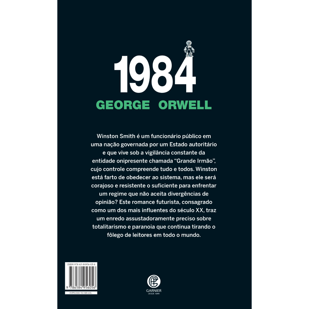 Winston Smith leva uma vida monótona em Londres, uma cidade pertencente ao fictício estado totalitário da Oceania, onde todos são cuidadosamente observados pelo Grande Irmão, e cada atitude é inspecionada – e, se necessário, severamente punida – pela Polícia do Pensamento. Mas em seus súbitos impulsos de questionamento sobre essa realidade, terá ele coragem para enfrentar um sistema opressivo e vigilante que não admite oposição? Após mais de 70 anos de sua primeira publicação, esta obra continua a intrigar, surpreender e despertar um sinal de alerta contra o autoritarismo em leitores de todo o mundo. SOBRE O AUTOR Nascido em 25 de junho de1903 em Bengala (Índia), filho de Richard Walmsley Blair, um funcionário britânico do serviço civil indiano, e de Ida Mabel Limouzin, de origem francesa, Eric Arthur Blair, cujo pseudônimo é George Orwell, foi um jornalista, romancista, ensaísta e crítico literário. Depois de retornar à Inglaterra com seus pais, em1911, destacou-se nas escolas britânicas por ser brilhante intelectualmente. Chegou a se alistar na Polícia Imperial indiana, mas abandonou a carreira militar para se dedicar à literatura, criando obras de cunho político que viraram clássicos universais, como A Revolução dos Bichos e 1984. Faleceu em 21 de janeiro de 1950, em Londres, vítima de tuberculose. DESCRIÇÃO DO PRODUTO ISBN13: 9786584956056 Páginas: 224 Publicação: 2ª Edição - 2022 | Editora Garnier Encadernação: Brochura Formato: 15,1 x 23,0 cm Autor: George Orwell