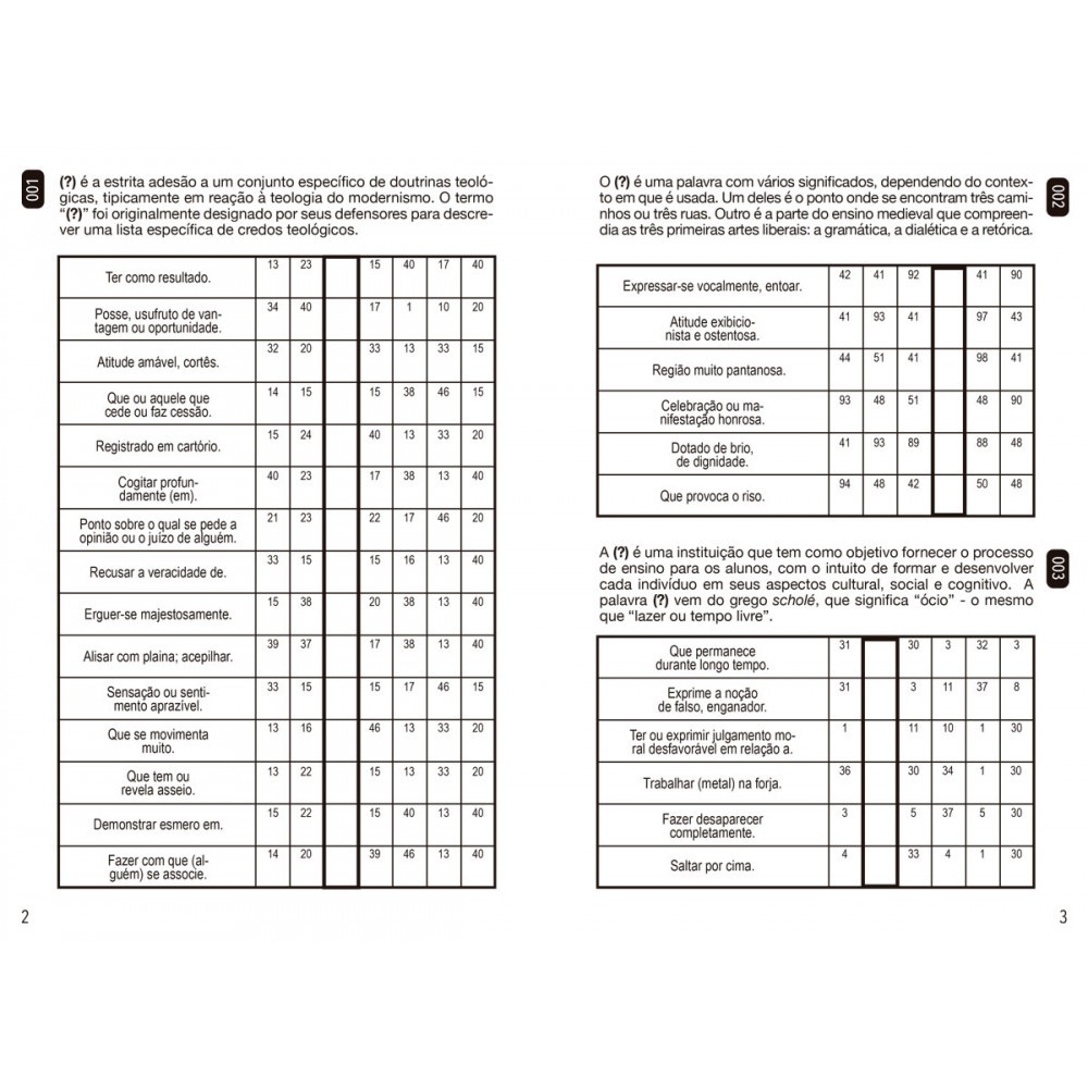 Desvende as letras referentes a cada número, descubra as palavras escondidas e aprenda com as curiosidades que acompanham cada um destes 365 criptogramas. Sua atenção e seu raciocínio lógico serão trabalhados enquanto você se diverte. Editora: Ciranda Cultural Edição: 1, 2024 Autor: Ciranda Cultural Idioma: Português Páginas: 288 Dimensões: L 15.60 x A 23.00 x E 1.50 ISBN: 9786587466255 Coleção: 365 atividades Linha Editorial: Ativamente Faixa Etária: + 12 anos Assuntos (tags): Atividades, Raciocínio, Aprendizado, Criptograma BISAC: Jogos & Atividades / Desafios Mentais e de Lógica Linha de Produto: 365 atividades Encadernação: Brochura Acabamento: Laminação brilho Material: Papel