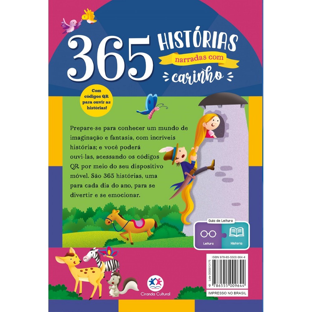 Prepare-se para conhecer um mundo de imaginação e fantasia com incríveis histórias para ler e sonhar. São 365 histórias, uma para cada dia do ano, para você se divertir e se emocionar! Editora: Ciranda Cultural Edição: 1, 2021 Autor: Ciranda Cultural Idioma: Português Páginas: 368 Dimensões: L 15.50 x A 23.00 x E 2.10 ISBN: 9786555009644