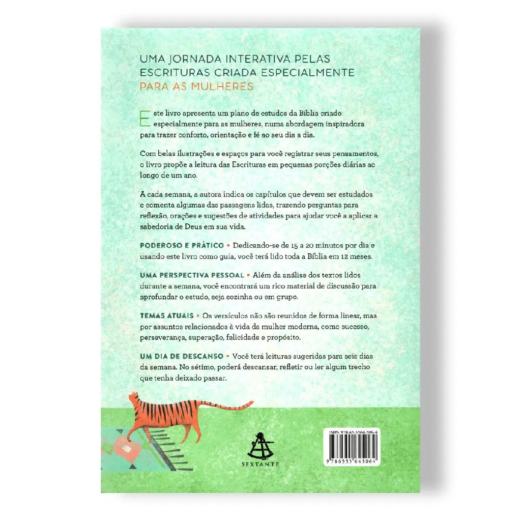 Livro A Bíblia em 52 Semanas Dra. Kimberly D. Moore Este livro apresenta um plano de estudos da Bíblia criado especialmente para as mulheres, numa abordagem inspiradora para trazer conforto, orientação e fé ao seu dia a dia. Com belas ilustrações e espaços para você registrar seus pensamentos, o livro propõe a leitura das Escrituras em pequenas porções diárias ao longo de um ano. A cada semana, a autora indica os capítulos que devem ser estudados e comenta algumas das passagens lidas, trazendo perguntas para reflexão, orações e sugestões de atividades para ajudar você a aplicar a sabedoria de Deus em sua vida. Poderoso e prático Dedicando-se de 15 a 20 minutos por dia e usando este livro como guia, você terá lido toda a Bíblia em 12 meses. Uma perspectiva pessoal Além da análise dos textos lidos durante a semana, você encontrará um rico material de discussão para aprofundar o estudo, seja sozinha ou em grupo. Temas atuais Os versículos não são reunidos de forma linear, mas agrupados por assuntos relacionados à vida da mulher moderna, como sucesso, perseverança, superação, felicidade e propósito. Um dia de descanso Você terá leituras sugeridas para seis dias da semana. No sétimo, poderá descansar, refletir ou ler algum trecho que tenha deixado passar. Páginas:208 Altura: 16 cm Largura: 23 cm Profundidade: 1.6 cm