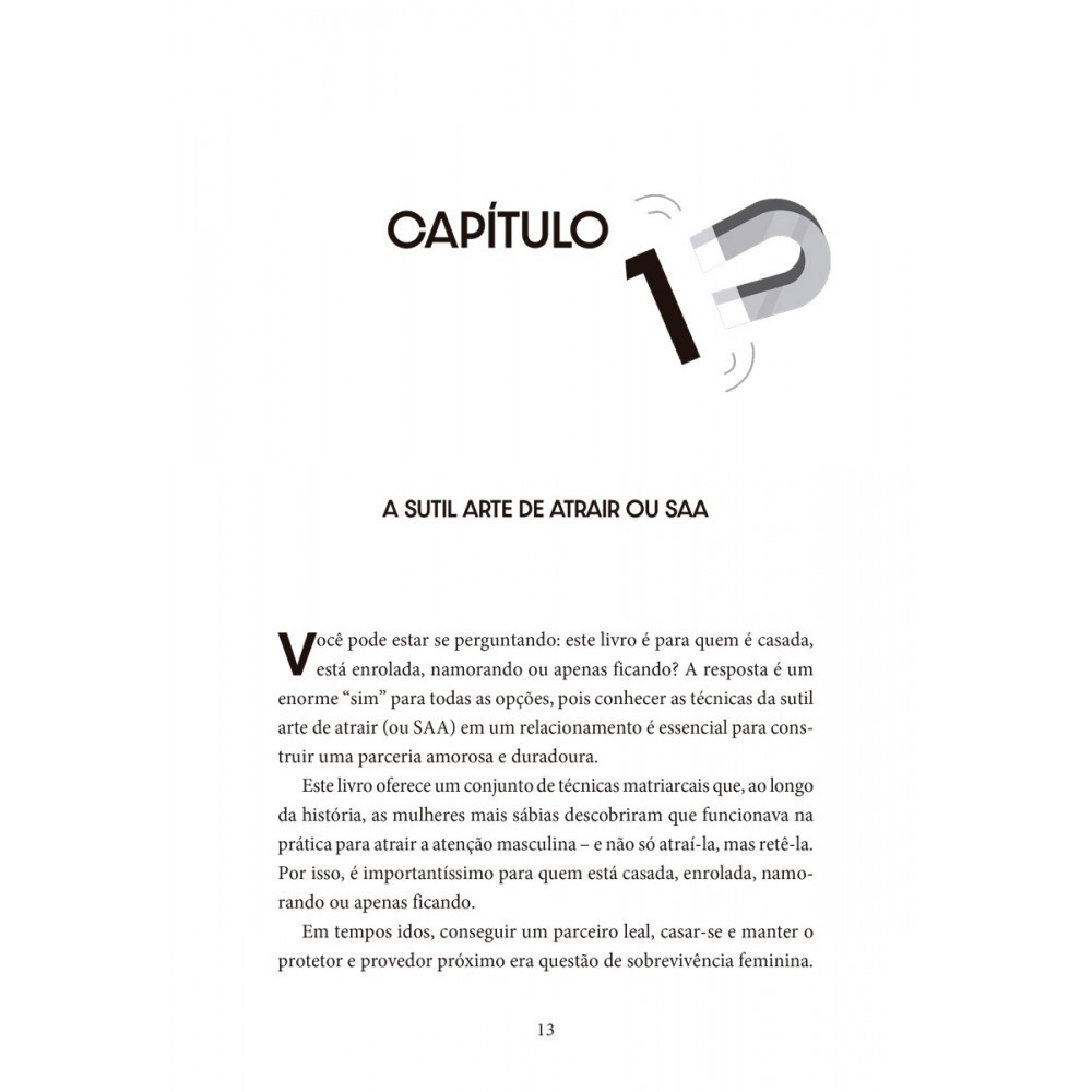 Em um mundo onde as interações estão cada vez mais superficiais, A sutil arte de atrair oferece um guia passo a passo para mulheres que desejam atrair um parceiro honrado ou fortalecer o magnetismo em seus relacionamentos.Com mais de 100 técnicas comprovadas, este livro revela como entender o funcionamento da mente masculina e como conquistar a atenção dos homens sem precisar apelar para a futilidade. Editora: Trend Edição: 1, 2024 Autor: Lucas Scudeler Idioma: Português Páginas: 256 Dimensões: L 15.50 x A 22.60 x E 1.45 ISBN: 9786583187222 Coleção: Não se aplica Linha Editorial: Trend Faixa Etária: + 18 anos Assuntos (tags): Relacionamento, Amor, Casamento BISAC: Autoajuda / Emoções Linha de Produto: Trend Encadernação: Brochura Acabamento: Laminação fosca Material: Papel