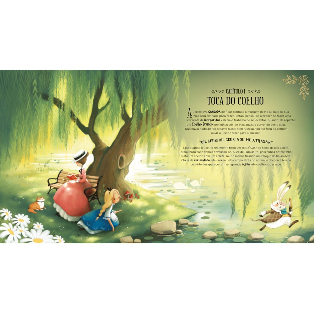 De repente, Alice vai parar no País das Maravilhas, um mundo bizarro, cheio de animais falantes, leis sem sentido, personagens estranhos e uma Rainha bastante cruel. Embarque nesta aventura com Alice. Um clássico atemporal, adaptado para crianças e acompanhado por ilustrações incrivelmente belas. Editora: Ciranda Cultural Edição: 1, 2025 Autor: Lewis Carroll Ilustrador: Daniela Volpari Idioma: Português Páginas: 64 Dimensões: L 24.00 x A 26.50 x E 1.20 ISBN: 9786526118412 Coleção: Clássicos de ouro Linha Editorial: Ciranda Cultural - Coedição Faixa Etária: + 9 anos Assuntos (tags): Contos clássicos, Alice, Imaginação, Natureza, Aventura BISAC: Literatura Infantil / Contos Linha de Produto: Almofadado grande Encadernação: Capa dura Acabamento: Laminação fosca e verniz localizado Material: Papel