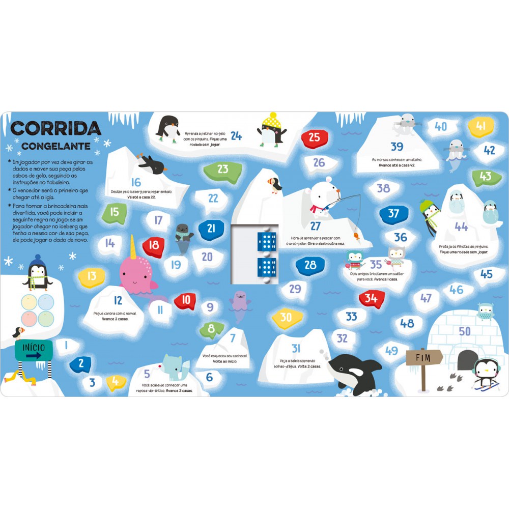 Divirta-se brincando com os jogos deste livro, que exploram as formas, as cores, os números e muito mais. Venha embarcar em uma corrida congelante com os pinguins, aventurar-se na fazenda com as ovelhas e fazer muitos outros passeios com esses jogos divertidos. Editora: Ciranda Cultural Edição: 1, 2023 Autor: Make Believe Ilustrador: Dawn Machell Idioma: Português Páginas: 10 Dimensões: L 22.00 x A 24.60 x E 2.00 ISBN: 9786526103326 Coleção: Gire e jogue Linha Editorial: Ciranda Cultural - Livro-brinquedo Faixa Etária: + 4 anos Assuntos (tags): Jogos, Diversão, Animais, Brincadeira, 4 anos BISAC: Jogos & Atividades / Jogos de Tabuleiro Linha de Produto: Livro tabuleiro Encadernação: Capa dura Acabamento: Laminação fosca e verniz localizado Material: Cartonado