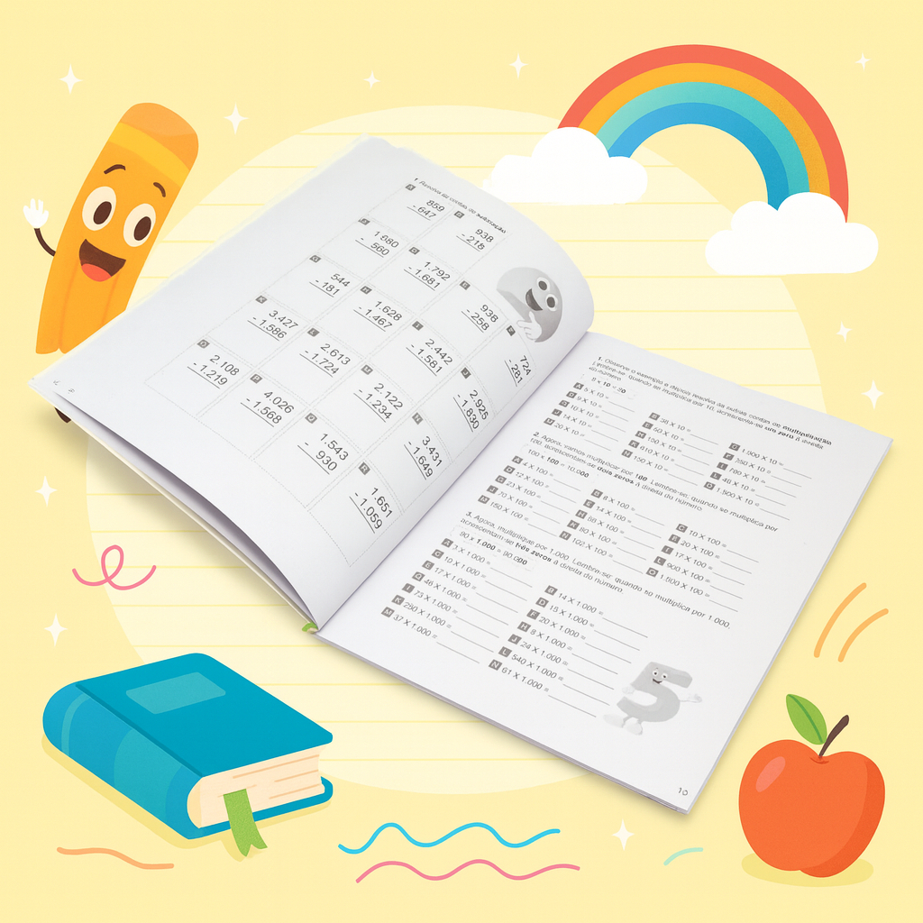 ATENÇÃO! ENVIAMOS SEU PEDIDO EM ATÉ TRÊS HORAS ÚTEIS APÓS A CONFIRMAÇÃO DE PAGAMENTO. 4º Ano Ensino Fundamental – Matemática e Português O 4º Ano Ensino Fundamental – Matemática e Português é uma cartilha completa e envolvente, criada para reforçar e ampliar o aprendizado das crianças que estão consolidando seus conhecimentos escolares. Ideal para reforço, revisão ou preparação, este material combina conteúdo pedagógico e diversão, tornando o estudo uma experiência agradável e produtiva. Com páginas 100% ilustradas e atividades interativas, o livro apresenta temas essenciais como frações, multiplicação, palavras compostas e sinônimos, ajudando as crianças a desenvolverem raciocínio lógico, compreensão textual e domínio da língua portuguesa de forma leve e eficiente. Cada atividade foi pensada para manter o interesse e o foco, estimulando o aprendizado de maneira natural e divertida. Além do conteúdo pedagógico de alta qualidade, a apostila se destaca pelo acabamento premium: Páginas de gramatura grossa e material durável, resistentes ao uso diário. Cores vivas e alto contraste, que estimulam a atenção e a concentração. Ilustrações educativas e alegres, que tornam o aprendizado mais agradável. Principais benefícios: -Ensina frações, multiplicação, palavras compostas e sinônimos de forma clara e prática. -Reforça o aprendizado de matemática e português com atividades divertidas. -Desenvolve raciocínio lógico, leitura, escrita e vocabulário. -Estimula o foco, a concentração e o gosto pelos estudos. -Pode ser usada como reforço escolar, preparação ou revisão de conteúdo. -Um passatempo educativo e inteligente, ideal para férias, viagens ou estudos em casa. Mais do que uma simples cartilha, o 4º Ano Ensino Fundamental – Matemática e Português é um companheiro de aprendizado completo, que une diversão, metodologia e qualidade para ajudar as crianças a se destacarem nos estudos e se apaixonarem pelo conhecimento. Características: Peso: 250 g Páginas: 66 Capa: Flexível Tamanho: 3X20X27 cm Garantia: 3 Meses #3°Ano #EnsinoFundamental #Matemática #Português #Apostila #Cartilha #Alfabetização #Exercícios #Atividades #Jogos #ParaCrianças #Educativo #Criativo #Divertido #LivroIlustrado #LeituraInfantil #VoltasAsAulas #Férias #Estudar #Reforço #ProntoParaEscola #ParaMeninos #ParaMeninas #Natal #DiaDasCrianças #Educação #EnvioRápido #Zumi #PassaTempo #Presente