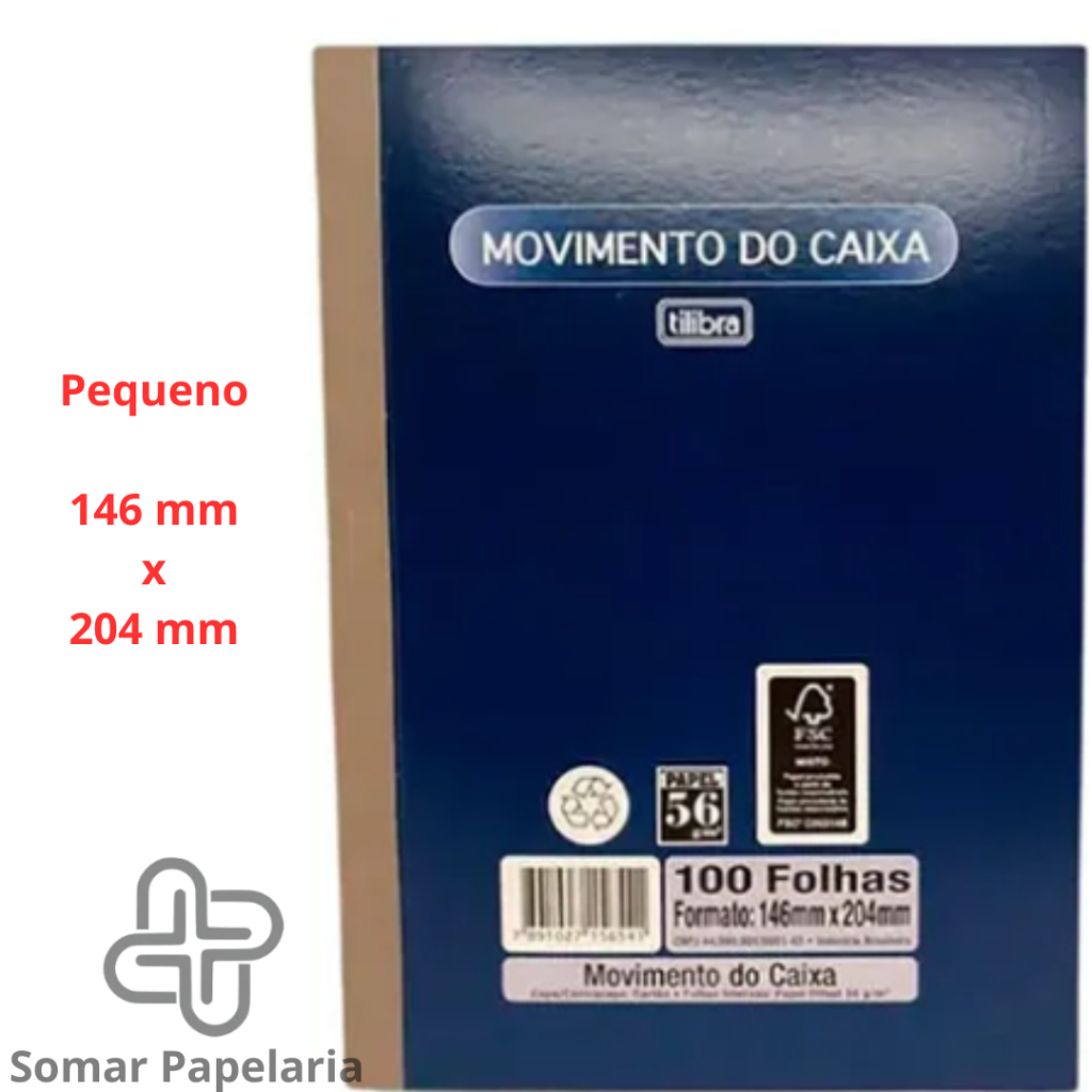 Se você gostou desse produto, já coloque ele como favorito (clique no coração) e não perca ele no seu radar de compras! *** Postagem no mesmo dia ou no primeiro dia útil após pedido *** O livro Movimento do Caixa é ideal para auxiliar na organização financeira em comércios. Cada folha possui fechamento diário do caixa, tendo movimentação de entradas e saídas. Disponível em dois tamanhos: - Pequeno 14,6cm x 20,4cm - Grande 21cm x 31,1cm Detalhes: - 100 folhas - Capa **flexível** - Gramatura 56g/m² - Marca Tilibra Clique no botão comprar para obtê-lo. A Somar Papelaria Virtual oferece uma gama de materiais necessários para facilitar o dia a dia do seu trabalho. Navegue em nossa página e confira nosso produtos!