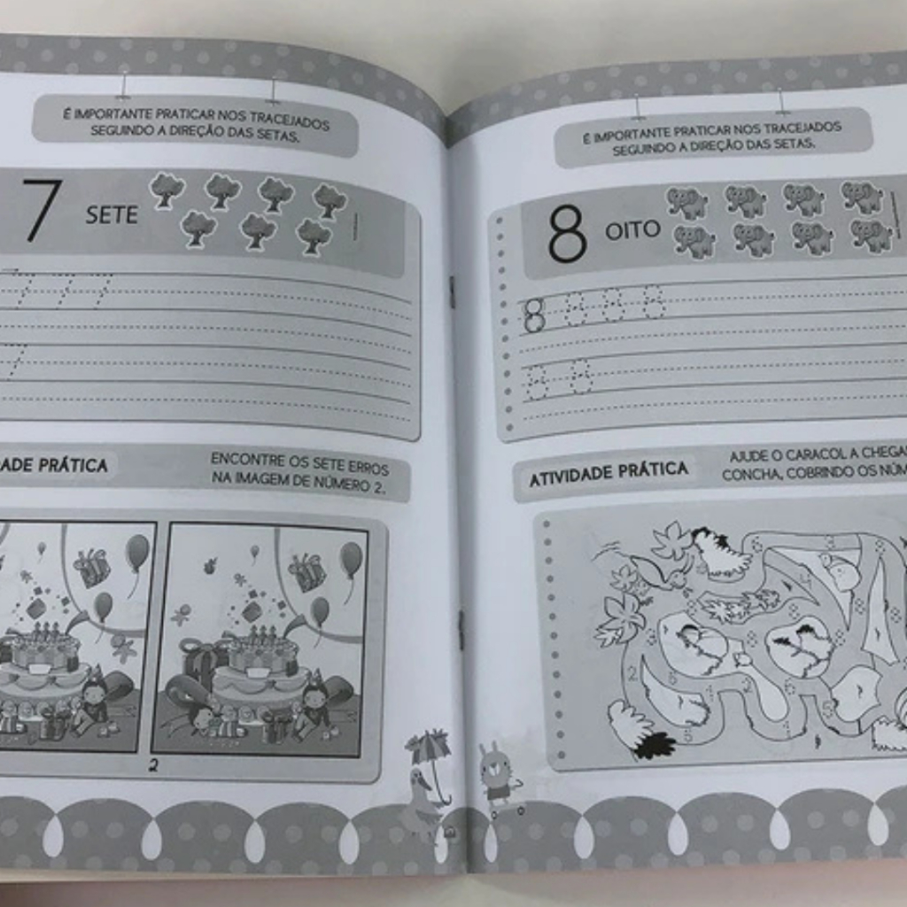 Você já aprendeu a escrever os números? Será que o número oito são apenas duas bolinhas? Aprenda brincando como traçar os números cobrindo os pontilhados e depois treinando sozinho. 19x26cm 16 Páginas
