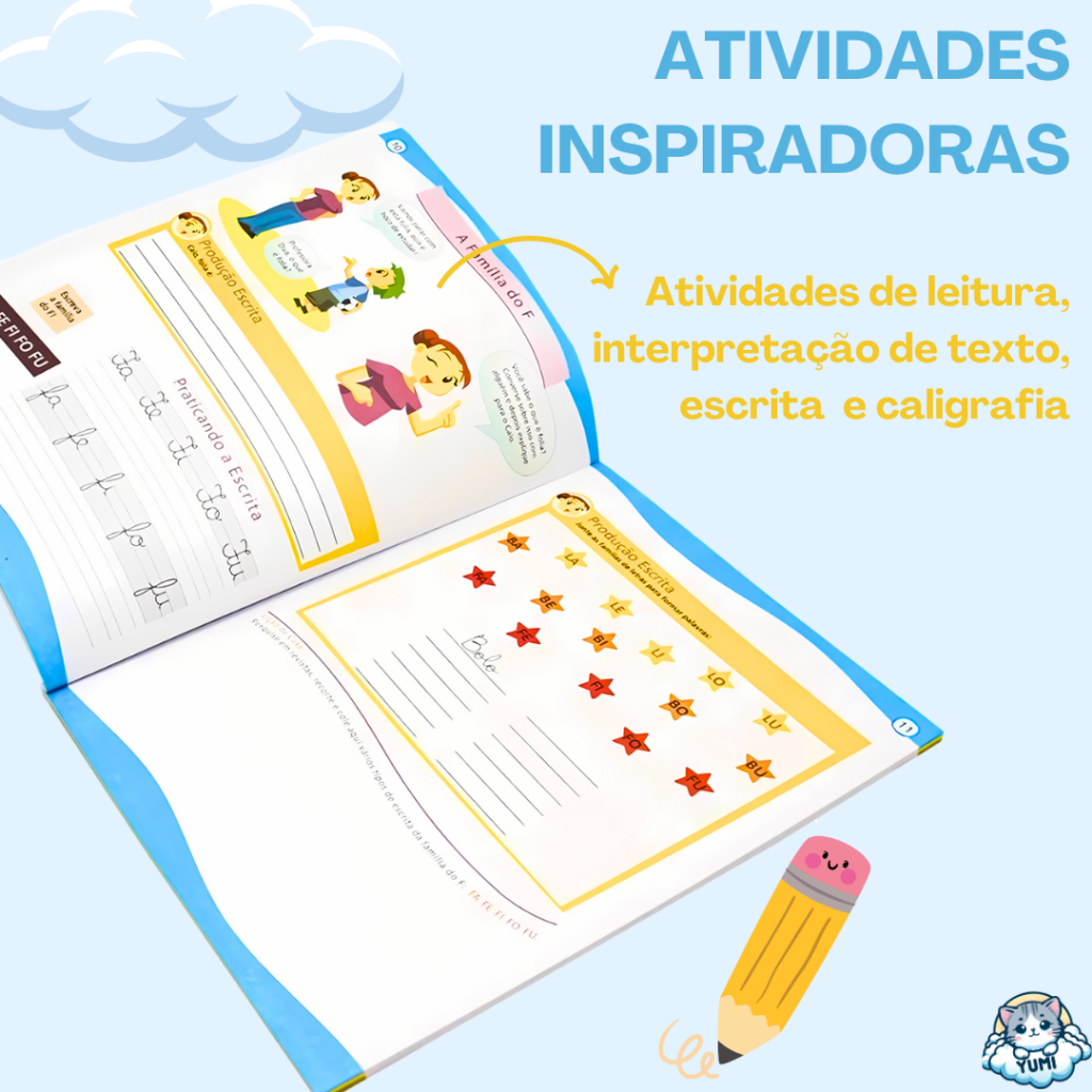 Livro Cartilha de Alfabetização Caligrafia Exercícios Atividades Coloridas