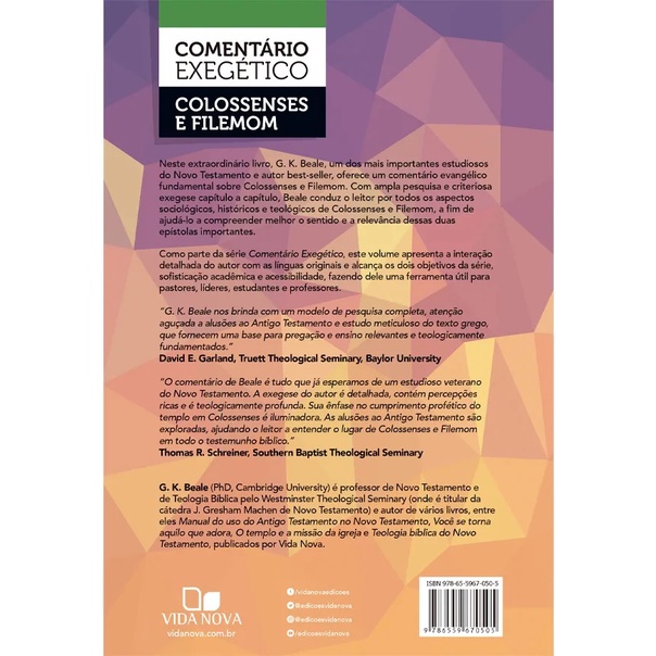 | Livro Colossenses E Filemom - Comentário Exegético este produto | R$ 164,90 | — | 5.0/5 | — |
