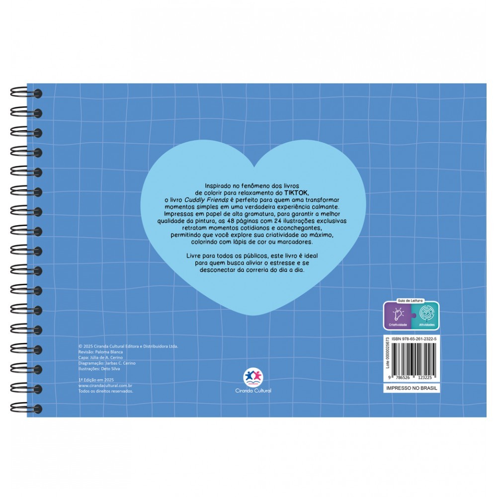 Inspirado no sucesso dos livros de colorir PARA RELAXAR no TikTok, este super livro é ideal para quem busca transformar momentos simples em uma experiência verdadeiramente calmante. Explore sua criatividade com lápis de cor ou marcadores, mergulhando em momentos de tranquilidade. Perfeito para todas as idades, este livrão oferece uma maneira leve e prazerosa de aliviar o estresse e de se desconectar da correria diária nessas 48 páginas com 24 ilustrações exclusivas. Livre para todos os públicos, este livro é perfeito para aliviar o estresse e se desconectar da correria do dia a dia. Editora: Ciranda Cultural Edição: 1, 2025 Autor: Ciranda Cultural Ilustrador: Jeferson Silva Idioma: Português Páginas: 48 Dimensões: L 45.00 x A 31.00 x E 1.00 ISBN: 9786526123225 Coleção: Comfy & cozy books Linha Editorial: Ciranda Cultural - Lab Faixa Etária: Sem definição Assuntos (tags): Colorir, Atividades, Relaxar, Pintar, Arteterapia, comfy, Cozy BISAC: Não Ficção Infantil / Jogos & Atividades Linha de Produto: Comfy & cozy books, Capa dura Encadernação: Capa dura Acabamento: Laminação fosca Material: Papel