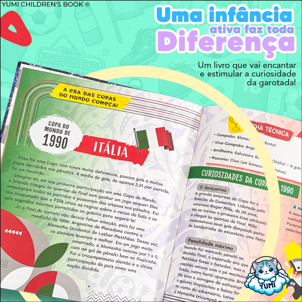 Prepare-se para entrar em campo e viver toda a emoção do maior evento do futebol mundial com o Livro O Grande Livro das Copas do Mundo – Capa Dura Premium. Um guia completo, envolvente e cheio de curiosidades para quem ama futebol e quer conhecer tudo sobre a história da Copa do Mundo. A cada quatro anos, o mundo inteiro se une pela paixão pelo futebol. E este livro captura toda essa magia, reunindo informações incríveis sobre o torneio mais importante do planeta. Aqui, você vai descobrir como a Copa do Mundo evoluiu ao longo dos anos, conhecer momentos inesquecíveis e mergulhar nas histórias que marcaram gerações. Explore páginas recheadas de conteúdo sobre: • Os maiores jogadores da história das Copas • Recordes impressionantes do torneio • Curiosidades sobre seleções e partidas marcantes • A evolução do futebol ao longo das décadas E a diversão não para por aí. Este livro também traz adesivos exclusivos, que tornam a experiência ainda mais interativa. Enquanto aprende, você pode colar os adesivos nas páginas e até personalizar outros espaços, deixando tudo do seu jeito. Com linguagem dinâmica e ilustrações envolventes, o livro é perfeito para crianças, jovens e até adultos apaixonados por futebol. Ele transforma o aprendizado em entretenimento, estimulando a curiosidade e o interesse pelo esporte mais amado do mundo. O acabamento é de alto padrão, com capa dura premium, garantindo resistência, durabilidade e um visual sofisticado. Um item ideal para colecionar, presentear ou guardar como recordação de momentos inesquecíveis do futebol. Coloque as suas chuteiras, separe a bola e prepare-se para o apito do juiz. A partida vai começar, e você é o protagonista dessa jornada pelo universo das Copas do Mundo. Importante: Este anúncio refere-se à venda de 1 livro. Com O Grande Livro das Copas do Mundo, cada página é um lance, cada capítulo é um gol e cada leitura é uma nova emoção dentro de campo.