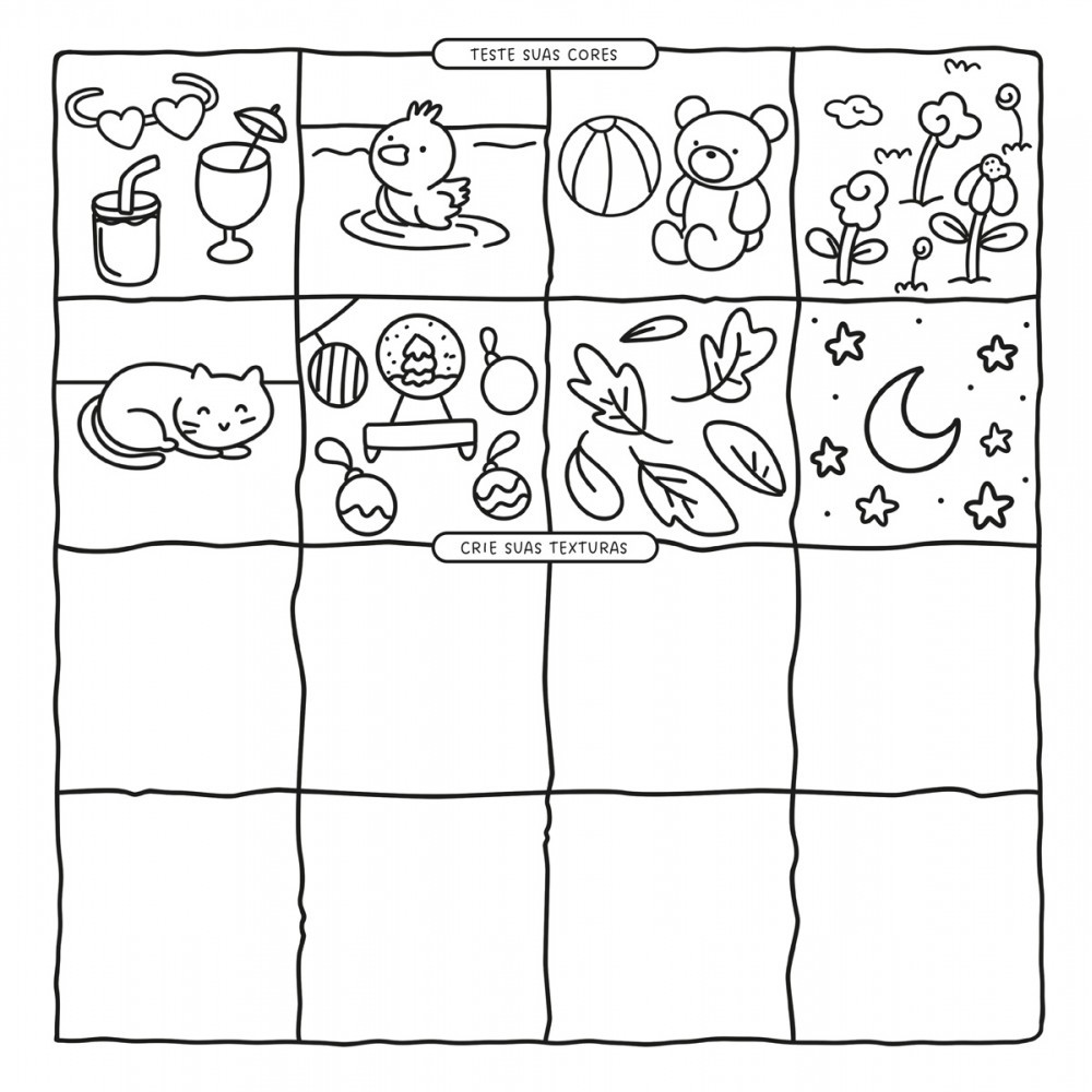 Inspirado no fenômeno dos livros de colorir para relaxamento do TikTok,o livro CUTE CAPYBARAS é perfeito para quem ama transformar momentos simples em uma verdadeira experiência calmante. Impressas em papel de alta gramatura, para garantir a melhor qualidade de pintura, as 48 páginas com 23 ilustrações exclusivas e uma página para você testar cores e texturas retratam momentos cotidianos e aconchegantes, permitindo que você explore sua criatividade ao máximo, seja colorindo com lápis de cor ou marcadores. Livre para todos os públicos, este livro é perfeito para aliviar o estresse e se desconectar da correria do dia a dia. Editora: Ciranda Cultural Edição: 1, 2025 Autor: Ciranda Cultural Ilustrador: Luana Chinaglia Idioma: Português Páginas: 48 Dimensões: L 24.00 x A 24.00 x E 0.50 ISBN: 9786526123294 Coleção: Comfy goods Linha Editorial: Ciranda Cultural - Lab Faixa Etária: + 4 anos Assuntos (tags): Relaxar, Arteterapia, Colorir, Diversão, Pintar, Pintura BISAC: Jogos e Atividades / Jogos e Atividades / Livros de Colorir Linha de Produto: Comfy and cozy books Encadernação: Lombada quadrada Acabamento: Verniz UV localizado Material: Papel