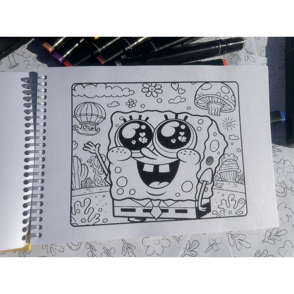 Livro de Colorir Bob Esponja A5 Capa Dura Espiral Infantil Criativo Educativo Caderno Pintura