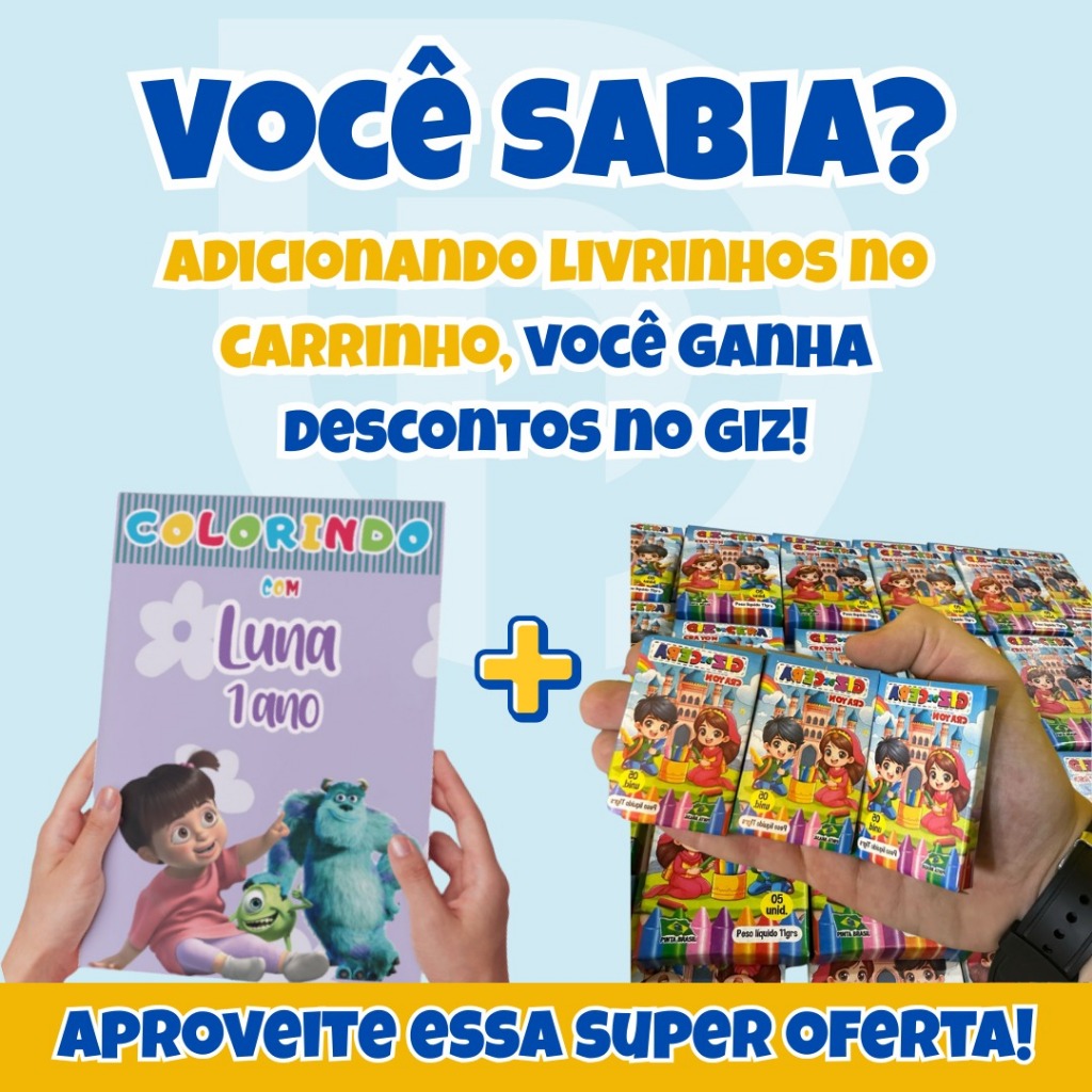Livro de Colorir com Capa Personalizada – Fazemos Qualquer Tema! A CAPA é personalizada com nome, idade e tema à sua escolha 🎨 (Os desenhos seguem o tema escolhido) 📩 ENVIE NOME E IDADE NO CHAT NO ATO DA COMPRA. ⚠️ Se não forem enviados, o livro será enviado apenas com o tema. Detalhes: 8 desenhos para colorir (frente e verso) Papel interno: Sulfite 75g Capa colorida: Papel Offset 120g Tamanho: 21 x 14,8 cm Venda: a partir de 5 unidades Enviar o Nome e Idade para Personalização via chat NO ATO DA COMPRA !! 🚨 FAVOR SE ATENTAR A ESSA INFORMAÇÃO. ⚠️Caso não seja enviado o nome e idade para personalização no ato da compra, o livro será enviado somente com o tema do anuncio.