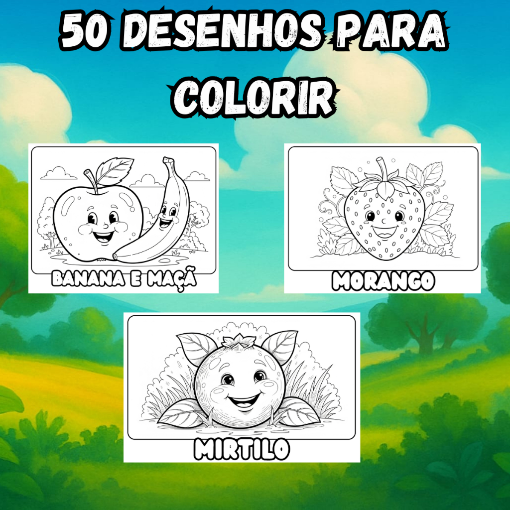 | Livro De Colorir Frutas Animadas Aprendizado Capa Dura 50 Páginas 1... este produto | R$ 22,90 | 62% | 5.0/5 | 7 |