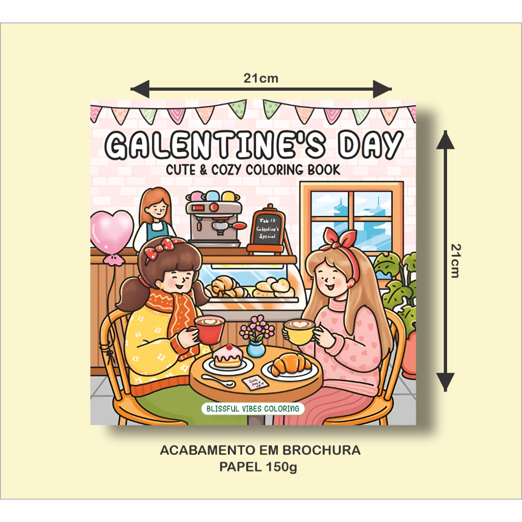 Livro de Colorir GALENTINES DAY com 43 Páginas de 21x21cm 150g