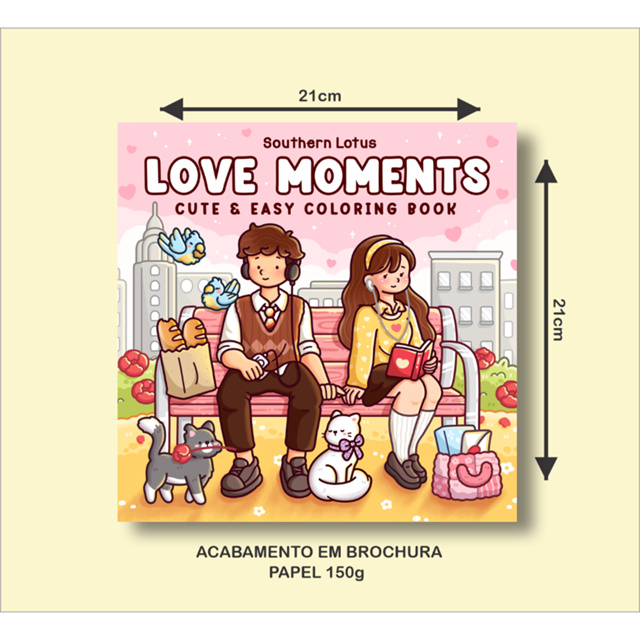 Livro de Colorir LOVE MOMENTS com 43 Páginas de 21x21cm 150g