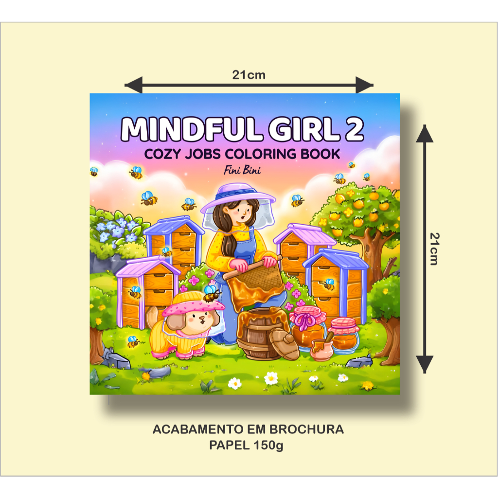 Livro de Colorir MINDFUL GIRL 2 LANÇAMENTO com 43 páginas de 21x21cm 150g