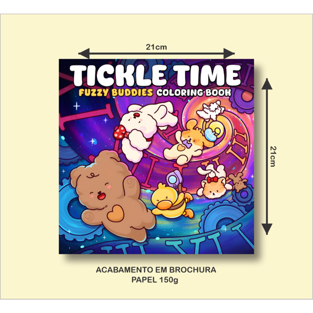 Livro de colorir TICKLE TIME LANÇAMENTO com 42 páginas de 21x21cm