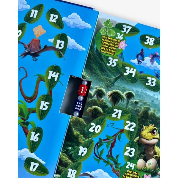 Dinossauros - Um Jogo de Tabuleiro é uma aventura superdivertida que convida os pequenos a explorarem o incrível mundo dos dinossauros enquanto aprendem brincando! Com um tabuleiro colorido, cheio de detalhes e regras simples de entender, o jogo estimula o raciocínio lógico, a tomada de decisões e a socialização, garantindo muitas risadas e momentos especiais em família ou com os amigos.