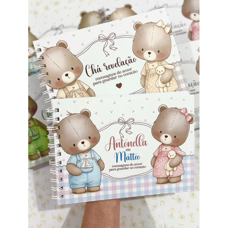 Transforme o seu Chá Revelação em uma lembrança inesquecível Este Livro de Mensagens foi criado para que amigos e familiares deixem recadinhos cheios de amor, carinho e palpites sobre a chegada do bebê. Uma recordação especial para guardar para sempre e reviver esse momento único sempre que quiser DESCRIÇÃO DO PRODUTO Livro de Mensagens para Chá Revelação Tamanho A5 Capa Dura 15,5x21,5 Laminação Fosca Encadernação em Wire-o Papel 90G Alta Resolução de impressão Quantidade de folhas de 50 a 100 à escolher Opção com e sem espaço para fotos *IMPRESSÃO DE FOTOS NÃO INCLUSA* as fotos devem ser tamanho A7 (7,4×10,5) Polaroide fica perfeito