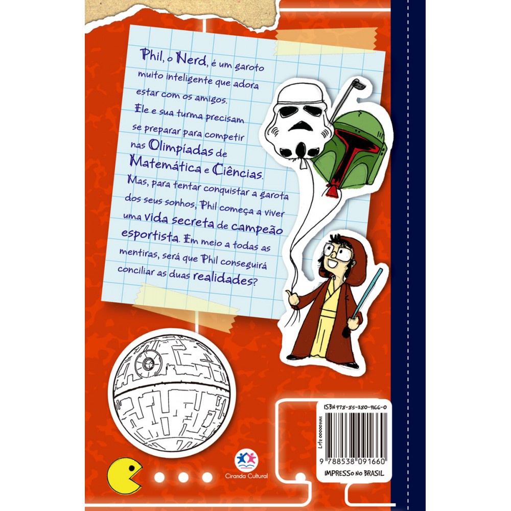 Phil, o nerd, é um garoto de 12 anos muito inteligente que adora estar com os amigos. Ele e sua turma precisam se preparar para competir nas Olimpíadas de Matemática e Ciências. Mas, para tentar conquistar a garota dos seus sonhos, Phil começa a viver uma vida secreta de campeão esportista. Em meio a todas as mentiras, será que Phil conseguirá conciliar as duas realidades? Editora: Ciranda Cultural Edição: 2, 2019 Autor: Philip Osbourne Idioma: Português Páginas: 160 Dimensões: L 13.50 x A 20.20 x E 0.90 ISBN: 9788538091660