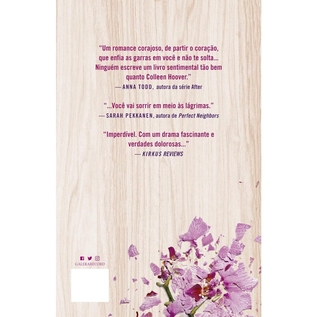 Considerado o livro do ano, que virou febre no TikTok e sozinho já acumulou mais de um milhão de exemplares vendidos no Brasil. É Assim que acaba é o romance mais pessoal da carreira de Colleen Hoover, discutindo temas como violência doméstica e abuso psicológico de forma sensível e direta.    Em É assim que acaba, Colleen Hoover nos apresenta Lily, uma jovem que se mudou de uma cidadezinha do Maine para Boston, se formou em marketing e abriu a própria floricultura. E é em um dos terraços de Boston que ela conhece Ryle, um neurocirurgião confiante, teimoso e talvez até um pouco arrogante, com uma grande aversão a relacionamentos, mas que se sente muito atraído por ela. Quando os dois se apaixonam, Lily se vê no meio de um relacionamento turbulento que não é o que ela esperava. Mas será que ela conseguirá enxergar isso, por mais doloroso que seja? É Assim que acaba é uma narrativa poderosa sobre a força necessária para fazer as escolhas certas nas situações mais difíceis. Considerada a obra mais pessoal de Hoover, o livro aborda sem medo alguns tabus da sociedade para explorar a complexidade das relações tóxicas, e como o amor e o abuso muitas vezes coexistem em uma confusão de sentimentos.   “Um romance corajoso, de partir o coração, que enfia as garras em você e não te solta... Ninguém escreve sobre sentimentos tão bem quanto Colleen Hoover.” -Anna Todd, autora da série After “...Você vai sorrir em meio às lágrimas.” - Sarah Pekkanen, autora de Perfect Neighbors “Imperdível. Com um drama fascinante e verdades dolorosas, esse livro retrata de maneira poderosa a devastação que o abuso pode causar - e a força de quem sobrevive a ele...” - Kirkus Review