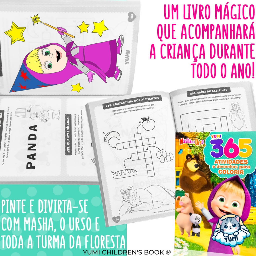 Livro Educativo Infantil Masha e o Urso | 365 Atividades para Crianças | Colorir e Brincar