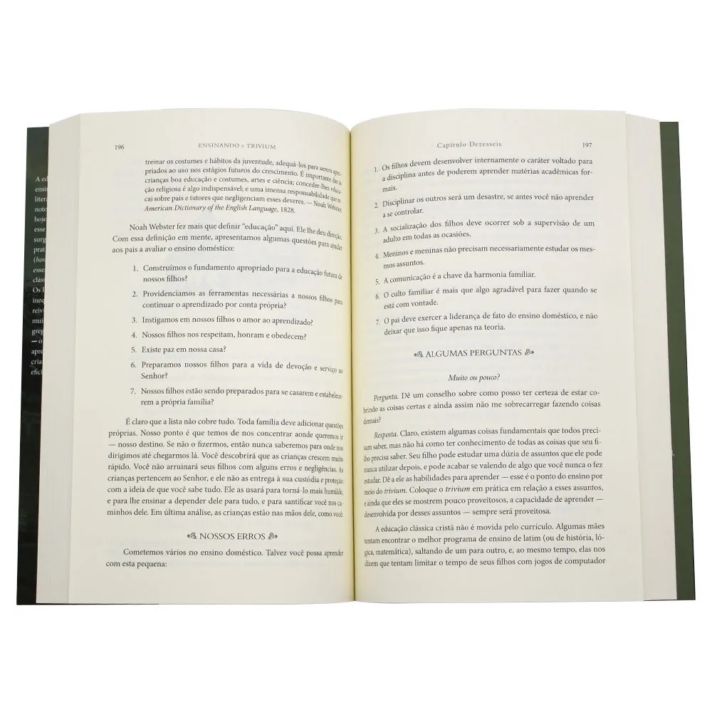 Como é possível dar a seus filhos as ferramentas de necessárias para eles ensinarem a si mesmos? Há muito tempo, primeiro se ensinava aos alunos como aprender. Hoje, ensina-se a eles uma variedade enciclopédica de assuntos — trivialidades — mas não as habilidades básicas do aprendizado: descobrir, raciocinar e aplicar. Não se lhes ensina o trivium. Pode-se ensinar em casa, em estilo clássico, sem fazer concessão dos princípios cristãos? Por sermos cristãos, não queremos buscar metas não cristãs. A educação clássica deve ser joeirada na peneira crítica das Escrituras a fim de ser transformada em um modelo bíblico. Pode-se educar em casa, em estilo clássico, sem tornar o processo um fardo? O dia tem só 24 horas. Contamos com um plano viável para cada assunto, e para cada idade — algo que lhe permita respirar. É possível continuar a usar outros métodos educativos no lar dentro da estrutura da educação clássica. O ensino doméstico (homeschooling) diz respeito à renovação da visão sobre a família? A família está no centro do plano de Deus para a restauração da cultura cristã. O ensino doméstico não é uma forma alternativa de educar. Ela já existia antes dos outros modelos. Queremos restaurar a ordem bíblica para educar. Detalhes do produto: Autor: Harvey e Laurie Bluedorn Editora: Monergismo Acabamento: Brochura Formato: 16 larg. X 23 alt. Número de Páginas: 392