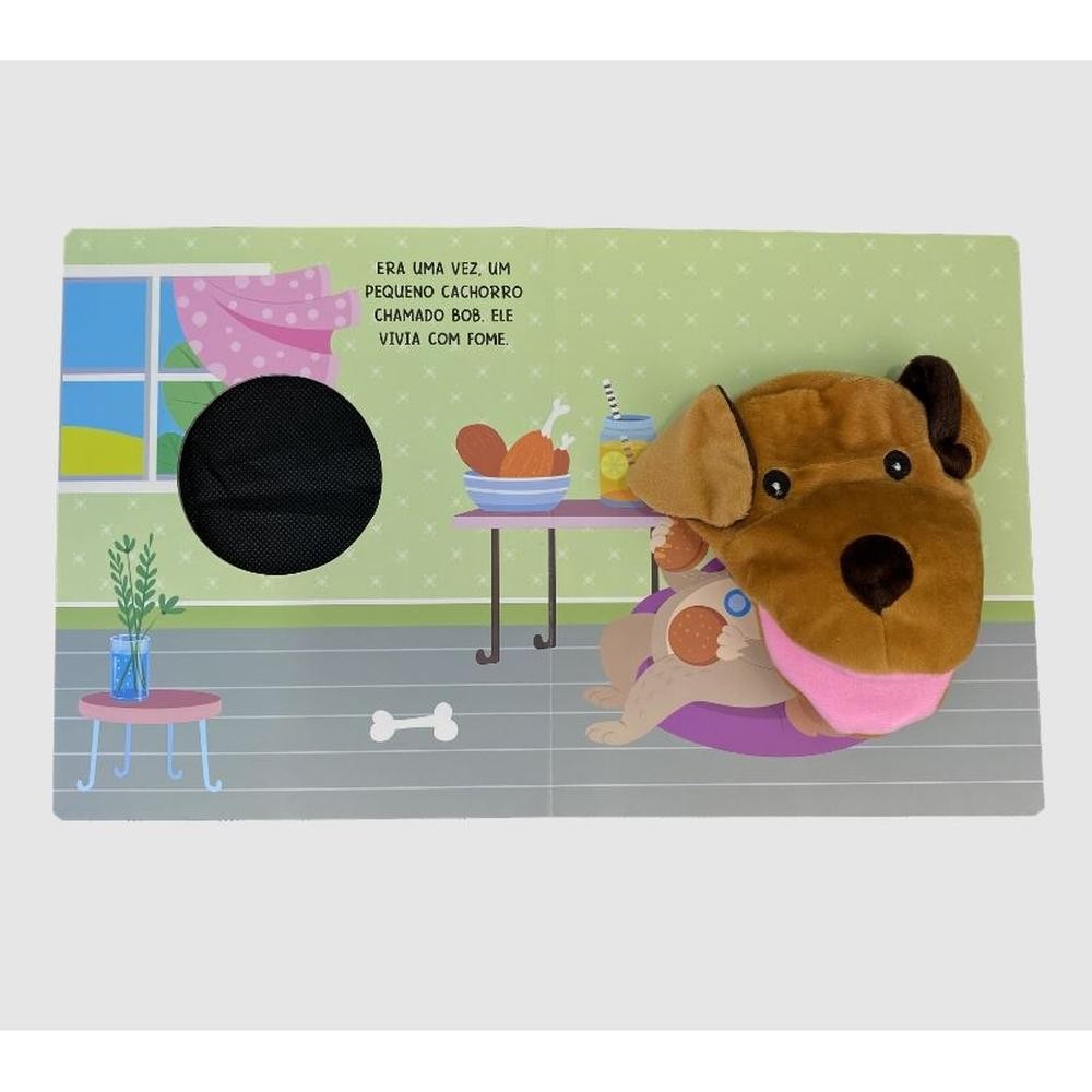 No "Livro Fantoche - Bob, O Cachorro Curioso", conheça Bob, um pequeno cachorro que adora comer. Após um aniversário cheio de guloseimas, Bob exagera e acaba com dor de barriga. Com a ajuda da mãe e uma lição importante, ele aprende a comer com moderação e a se satisfazer sem exageros. Uma história divertida e educativa sobre a importância de hábitos alimentares saudáveis!