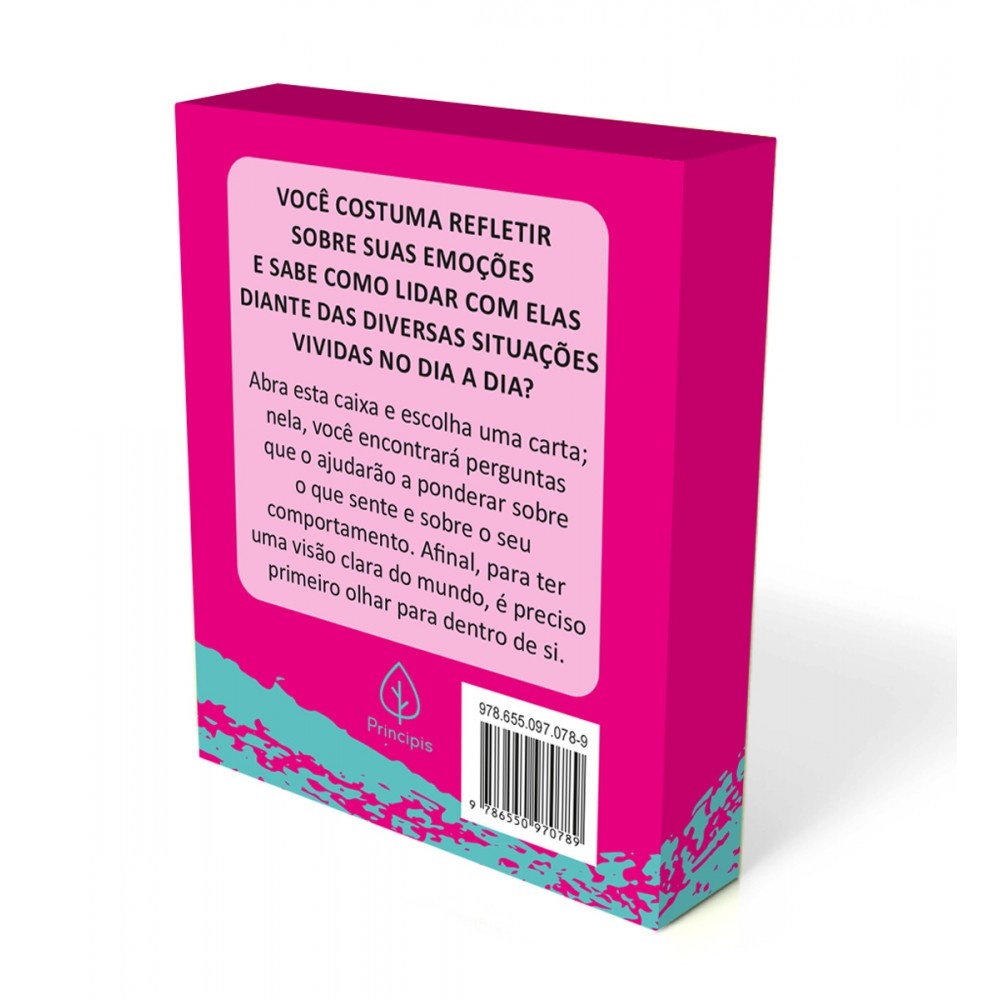 VOCÊ COSTUMA REFLETIR SOBRE SUAS EMOÇÕES E SABE COMO LIDAR COM ELAS DIANTE DAS DIVERSAS SITUAÇÕES VIVIDAS NO DIA A DIA? Abra esta caixa e escolha uma carta; nela, você encontrará perguntas que o ajudarão a ponderar sobreo que sente e sobre o seu comportamento. Afinal, para ter uma visão clara do mundo, é preciso primeiro olhar para dentro de si. Editora: Principis Edição: 1, 2023 Autor: Donaldo Buchweitz Idioma: Português Páginas: 200 Dimensões: L 7.00 x A 9.00 x E 2.60 ISBN: 9786550970789 Coleção: Não se aplica Linha Editorial: Principis - Desenvolvimento pessoal Faixa Etária: + 14 anos Assuntos (tags): Autoconhecimento, Desenvolvimento, Controle, Pensamentos, Desenvolvimento pessoal, Reflexão, Comportamento, Inspiração, Educação emocional, Inteligência emocional BISAC: Autoajuda / Autocontrole Linha de Produto: Caixa cards Encadernação: Não se aplica Acabamento: Laminação brilho Material: Papel
