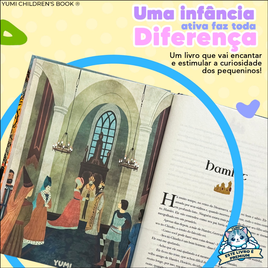 COMPRANDO HOJE ATÉ ÀS 12H (MEIO-DIA) ENVIAMOS NO MESMO DIA*. Shakespeare para Crianças – Um Clássico que Encanta Gerações Apresentar grandes histórias desde cedo é um presente que acompanha a criança por toda a vida, e Shakespeare para Crianças é o convite ideal para levar os pequenos a um universo rico em aventuras, emoções e personagens inesquecíveis. Celebradas há mais de 400 anos, as obras de William Shakespeare continuam atuais, divertidas e surpreendentes. Neste livro especial, os clássicos do maior dramaturgo de todos os tempos ganham uma linguagem acessível, envolvente e pensada especialmente para o público infantil, despertando o gosto pela leitura e estimulando a imaginação. As crianças irão conhecer histórias fascinantes, como o fantasma vingativo de Hamlet, o casal briguento de Muito Barulho por Nada, os personagens divertidos de Noite de Reis, entre muitos outros protagonistas marcantes que atravessaram séculos e continuam encantando leitores de todas as idades. Tudo isso reunido em um livro de edição colecionável, com capa dura e acabamento premium, ideal para presentear, colecionar ou criar momentos especiais de leitura em família. Mais do que um livro, esta obra é uma porta de entrada para a literatura clássica, contribuindo para o desenvolvimento do vocabulário, da criatividade e do amor pelos livros de forma leve e prazerosa. Um clássico reinventado para pequenos grandes leitores. Não perca a oportunidade de apresentar Shakespeare às crianças de um jeito acessível, envolvente e inesquecível. Sobre o Envio: -*Pedidos com pagamento aprovado até às 12h (meio-dia) serão enviados no mesmo dia, exceto aos finais de semana, feriados e emendas de feriados. -Pedidos com o pagamento aprovado após às 12h (meio-dia), finais de semana, feriados e emendas de feriados serão enviados em até 1 dia útil. -IMPORTANTE: (Sempre confira com atenção seu endereço e CEP). -* O prazo de entrega é estimado, podendo variar em caso de imprevistos, bem como Greve dos Correios.
