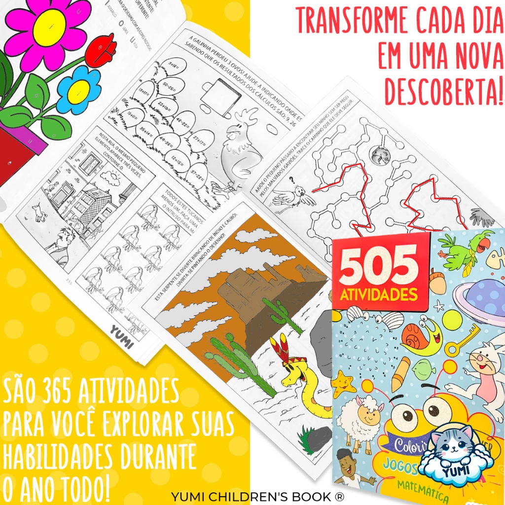 Livro Infantil 505 Atividades Para Crianças - Livro Educativo, Colorir, Escrever, Matemática, Jogos e Lógica