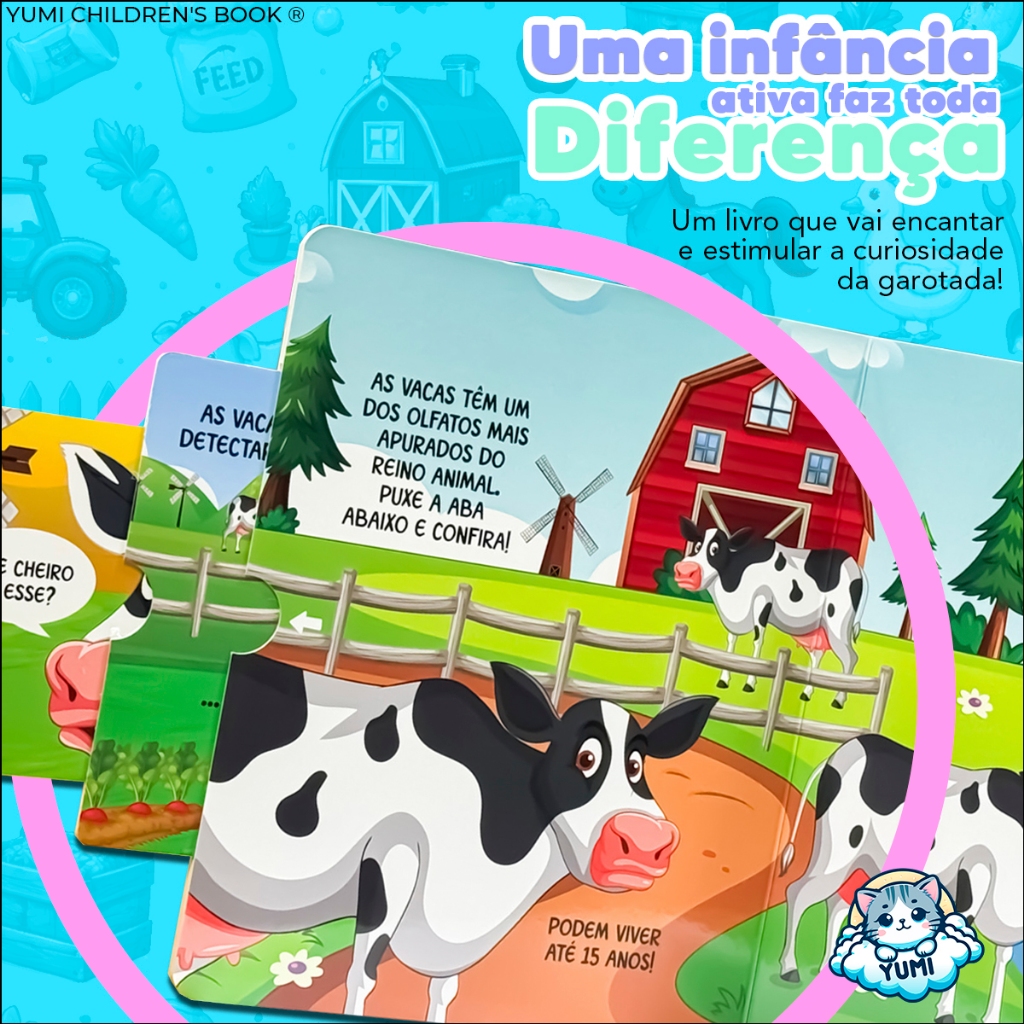 Livro Infantil Abas Animais Da Fazenda Abas Interativas | Capa Dura Livro Educativo