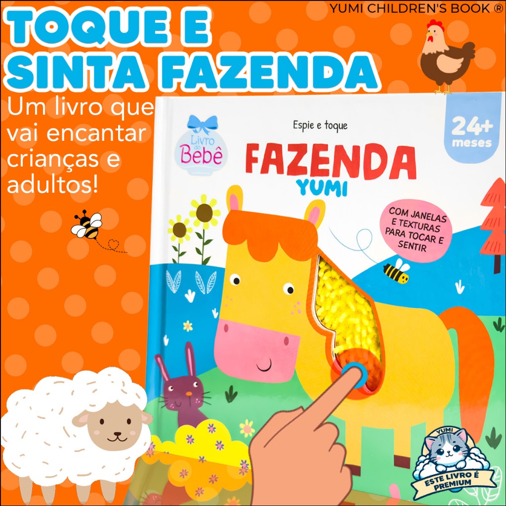 Livro Infantil Bebê Toque E Sinta Animais da Fazenda Sensorial Texturas Edição Premium