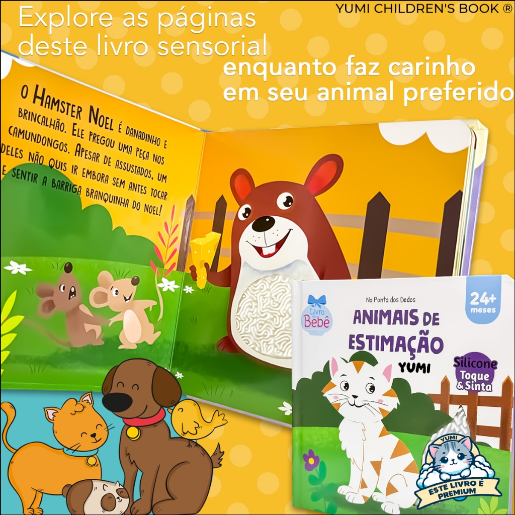 | Livro Infantil Bebê Toque E Sinta Animais De Estimação Sensorial Te... este produto | R$ 49,99 | 44% | 5.0/5 | 4 |