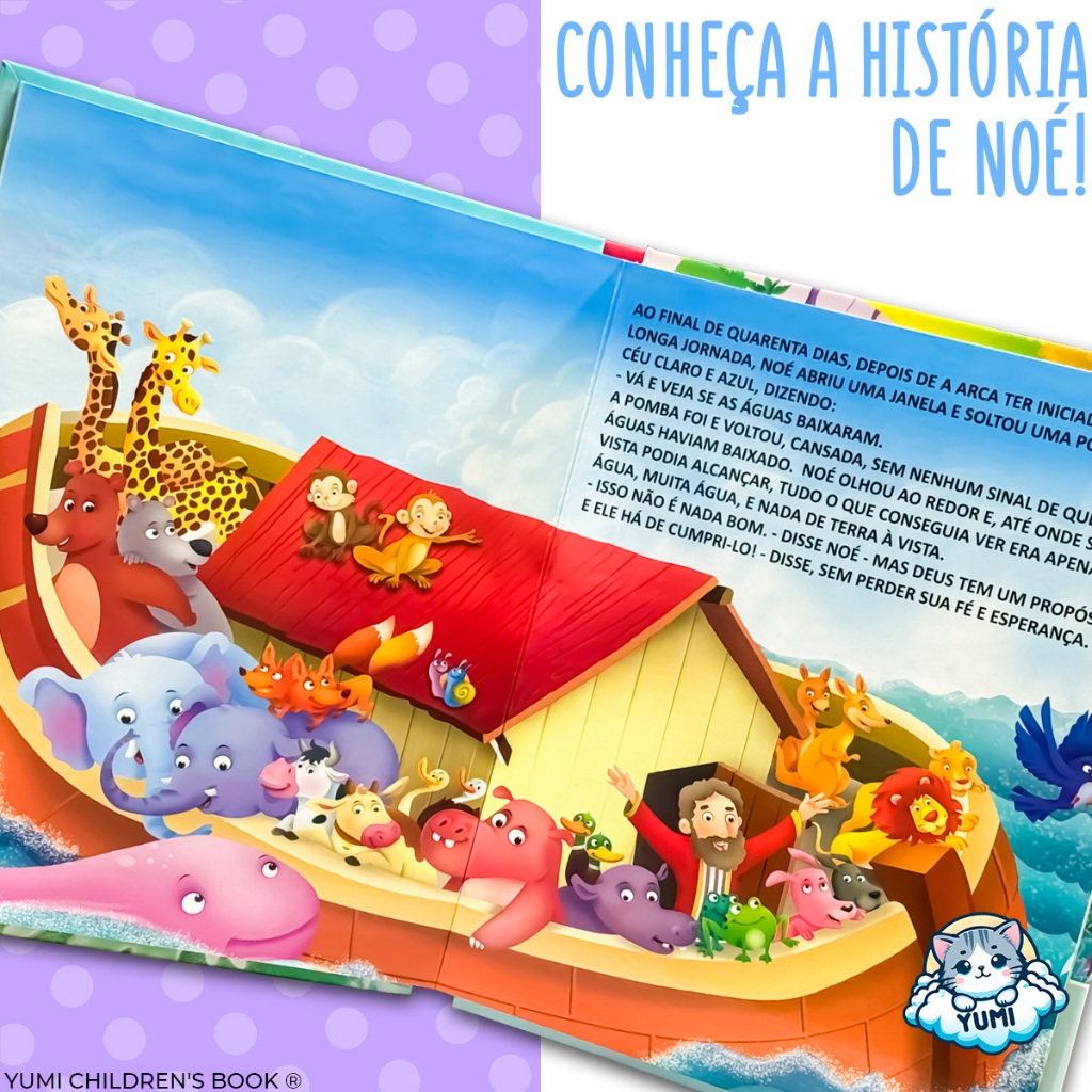 Livro Infantil Bíblico A arca de Noé Formato Grande | Histórias da Bíblia para Crianças Capa Dura Premium