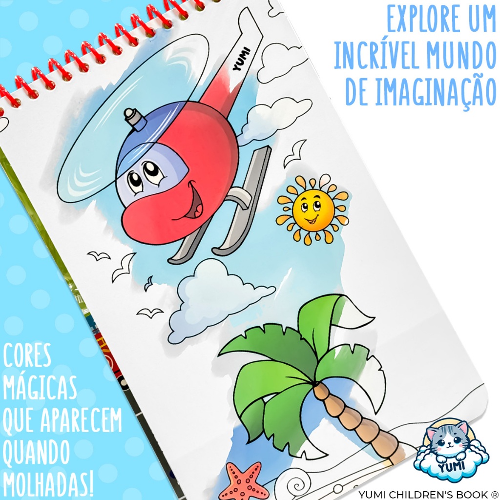 Livro Infantil Desenhos Carros Veículos Pinta Com Água Capa Dura Agua book Aquabook