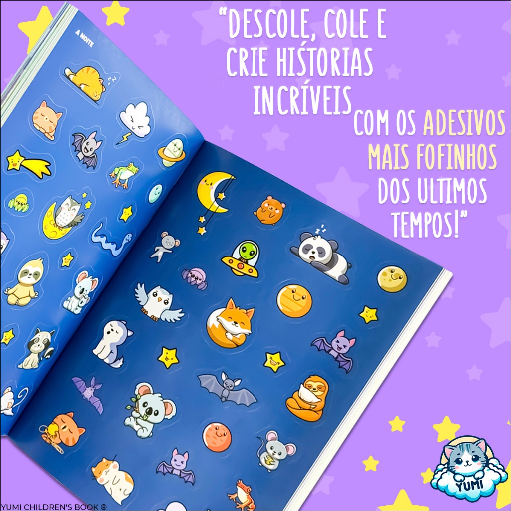 Livro Infantil e Adulto 44 Cenários Divertidos Com 1000 Adesivos Animais Fofinhos