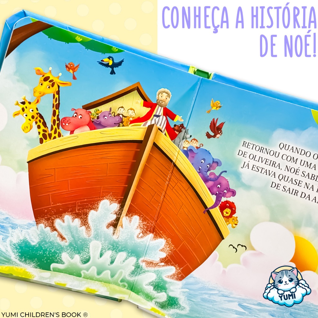 Livro Infantil Educativo A arca de Noé Capa Dura 0 a 8 anos Histórias da Bíblia Almofadado Folhas Duras Premium