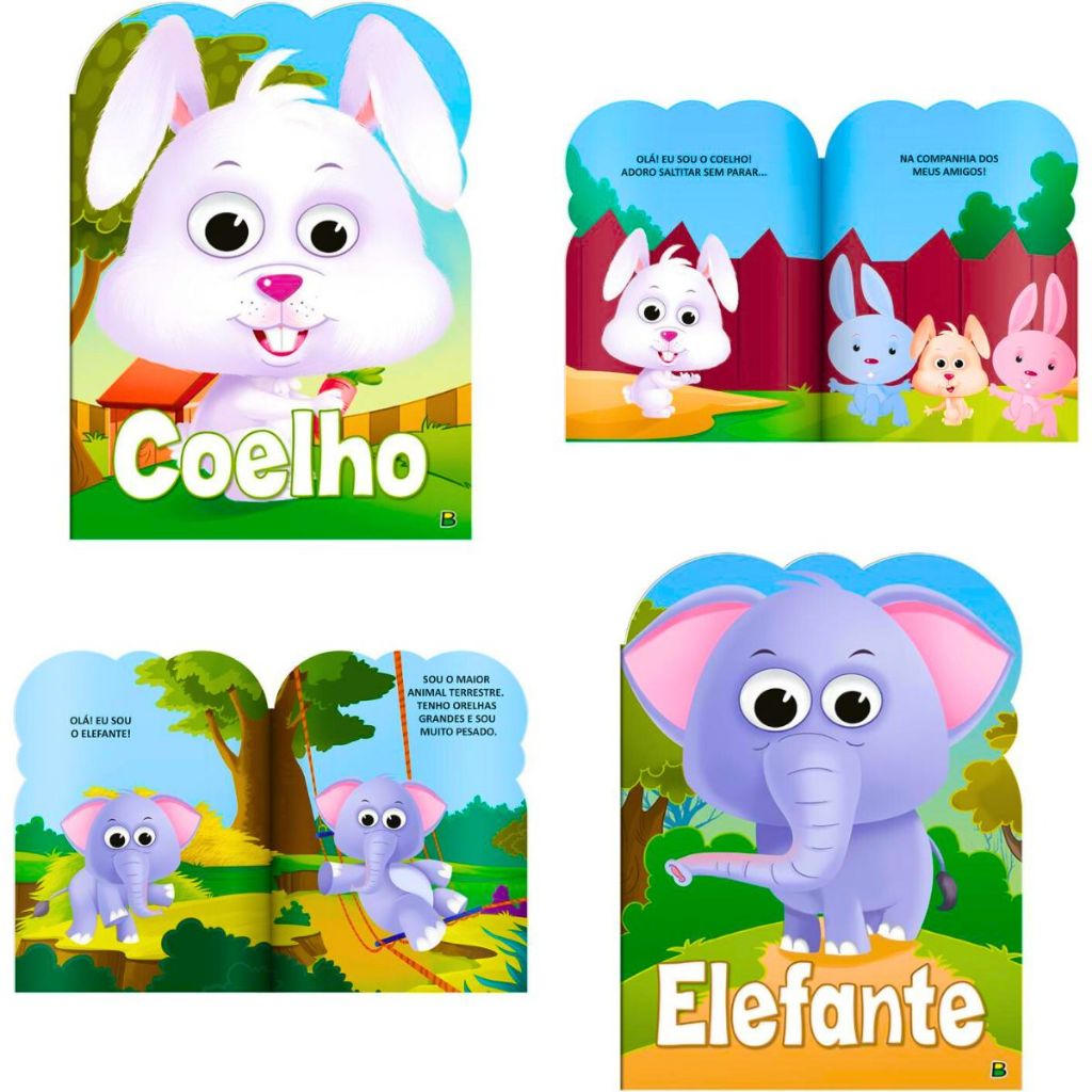 Produto a Pronta Entrega Envio Imediato Olá! Apresente aos seus pequenos o mundo dos animais de uma maneira divertida e criativa com a coleção 'Olha Quem Sou!'. A coleção de livros Olha Quem Sou, foi especialmente elaborada para crianças, apresentando as características básicas dos animais. Ao todo são 8 animais diferentes, incluindo: Leão, Cãozinho, Elefante, Ovelha, Coelho, Vaquinha, Galinha e o Gatinho. Aprenda sobre cada um deles de forma divertida. Benefícios: - Habilidades de leitura - Estímulo visual - Habilidades Cognitivas Indicado: - A partir de 3 anos