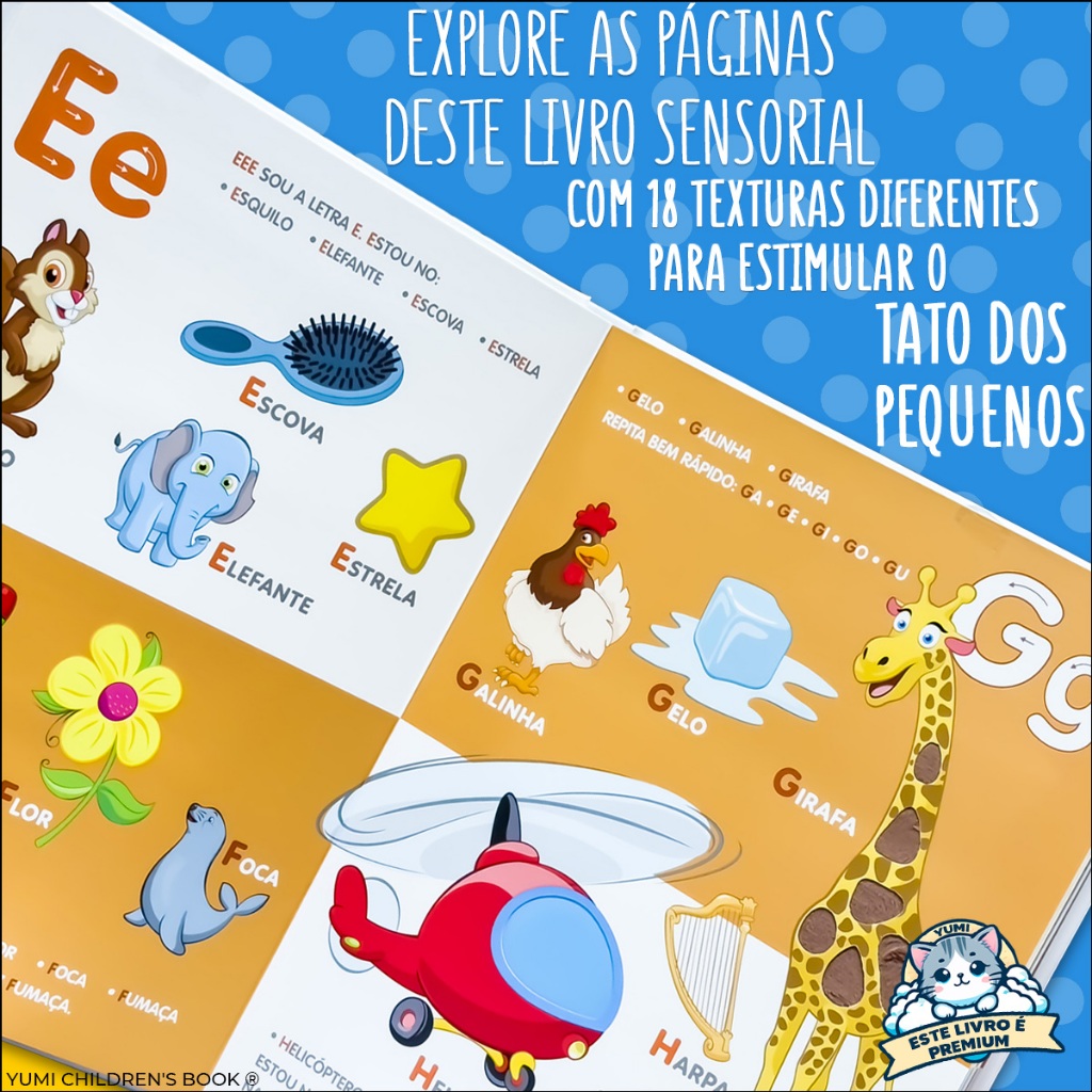 Livro Infantil Educativo Meu Alfabeto Sensorial - Toque E Sinta Para Bebês Tdah Tea Edição Grande Premium