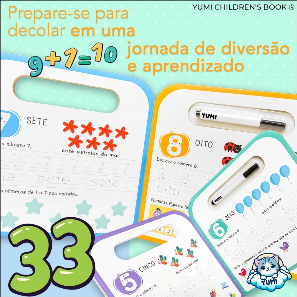 Livro Infantil Mágico Aprenda A Escrever Números C/ Caneta Apagável Caligrafia Alfabetização Escola