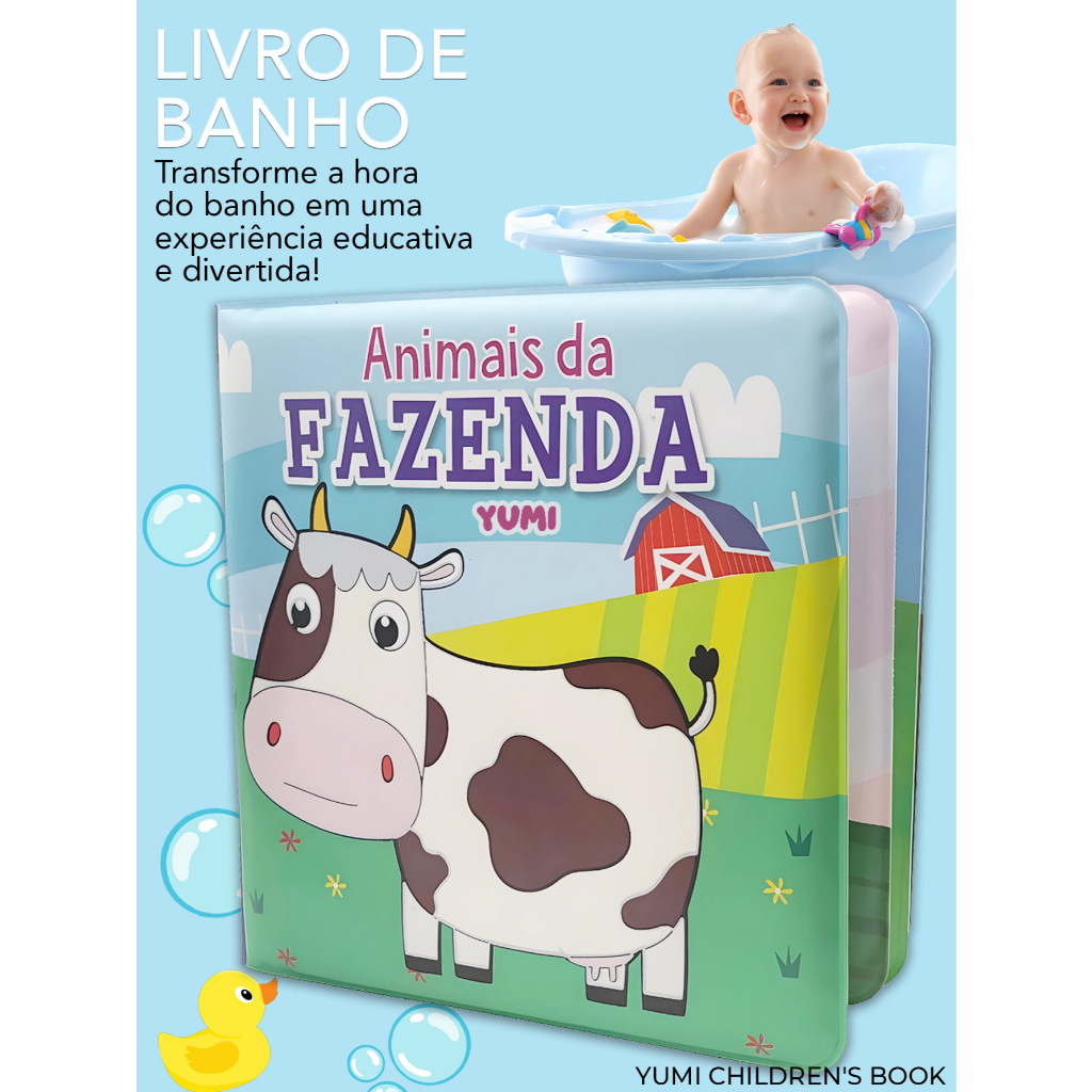Livro Infantil Mágico De Banho Para Bebês Animais da Fazenda - Molhe e Veja as Cores!