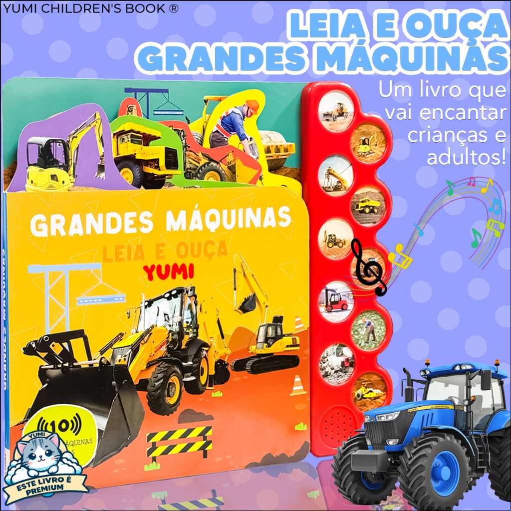 Livro Infantil Sensorial Grandes Máquinas Leia E Ouça Com Sons e Imagens Realistas Premium