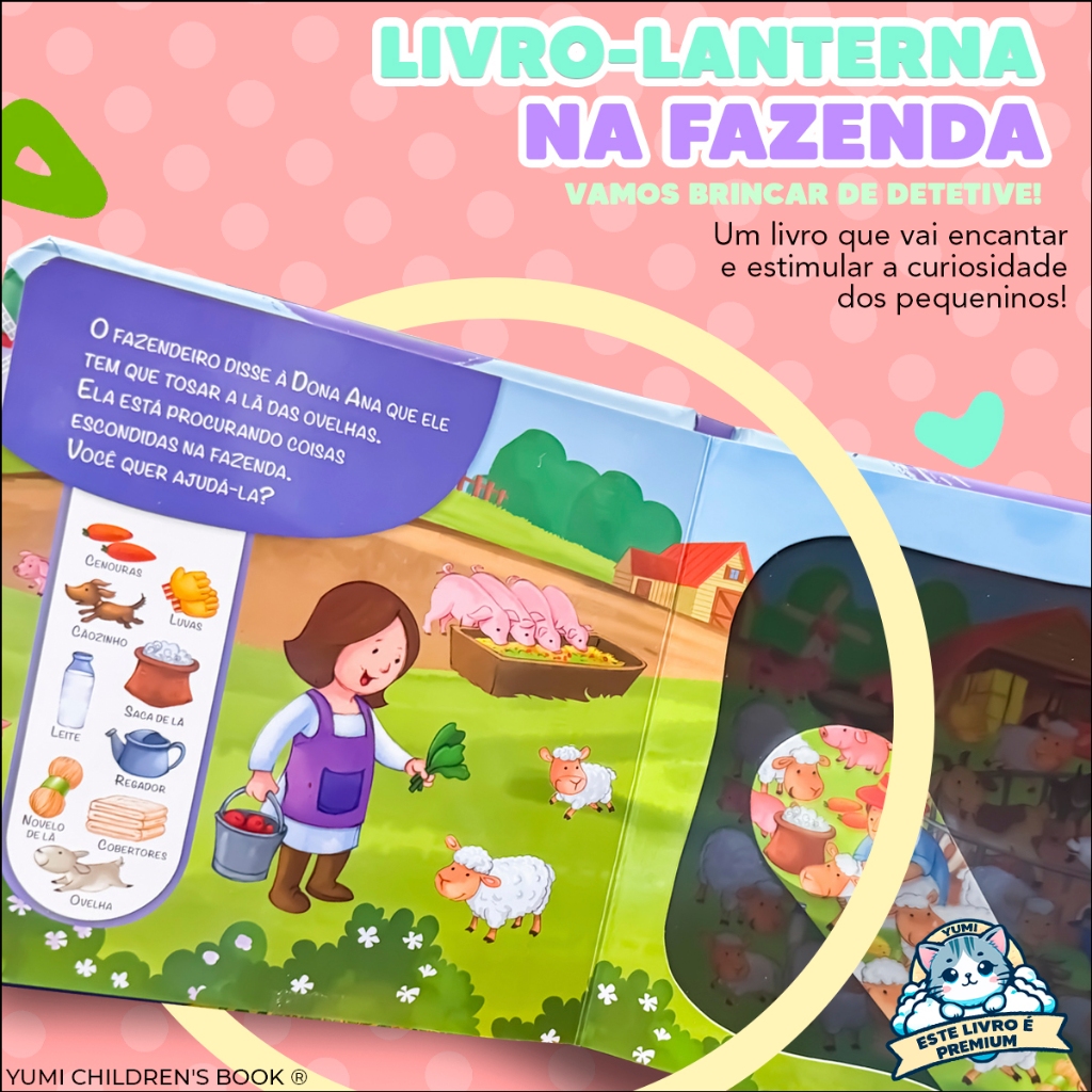 Livro-lanterna Infantil Animais Fazenda Livro Mágico Educativo Interativo Premium Colecionável