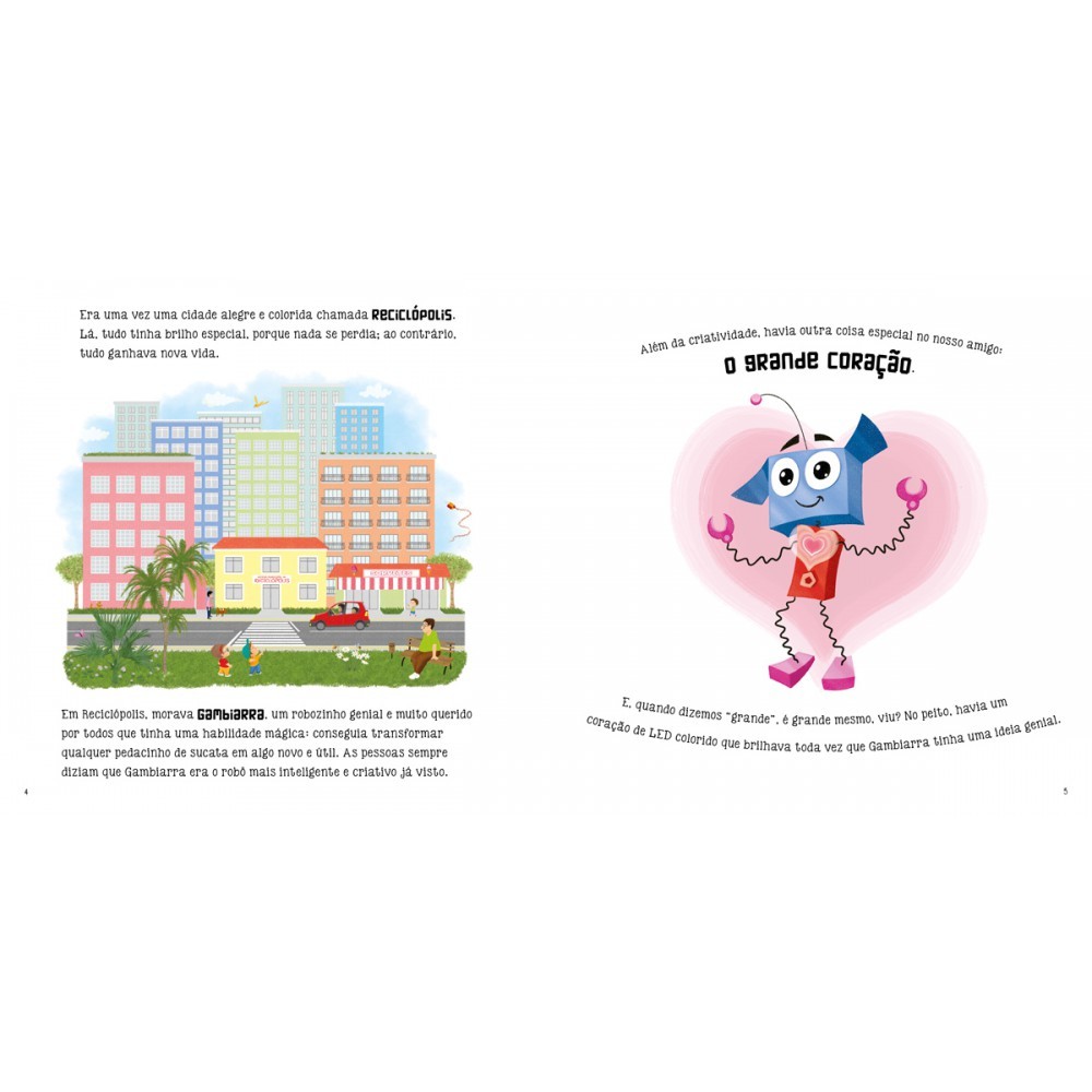 O robozinho Gambiarra adora transformar sucata em algo novo e útil. Com a amiga Sucatinha, forma uma dupla genial – verdadeiros embaixadores da cultura maker. Mas, agora, sua querida Reciclópolis precisa de ajuda para voltar a ser um lugar limpinho e cheio de vida. Será que essa dupla vai dar conta do desafio? Uma história divertida sobre o cuidado com o planeta, o poder das boas ideias e a força da união! Editora: Ciranda Cultural Edição: 1, 2025 Autor: Débora Garofalo Ilustrador: Simone Ziasch Idioma: Português Páginas: 32 Dimensões: L 24.00 x A 24.00 x E 0.30 ISBN: 9786526119808 Coleção: Universo maker Linha Editorial: Ciranda Cultural - Ficção infantil Faixa Etária: + 4 anos Assuntos (tags): Diversão, Ciências, Tecnologia, Curiosidade, Invenção, Reciclagem, ODS 11 - Cidades e comunidades sustentáveis BISAC: Literatura Infantil / Ciência & Tecnologia Linha de Produto: Literatura infantil Encadernação: Brochura Acabamento: Laminação fosca Material: Papel