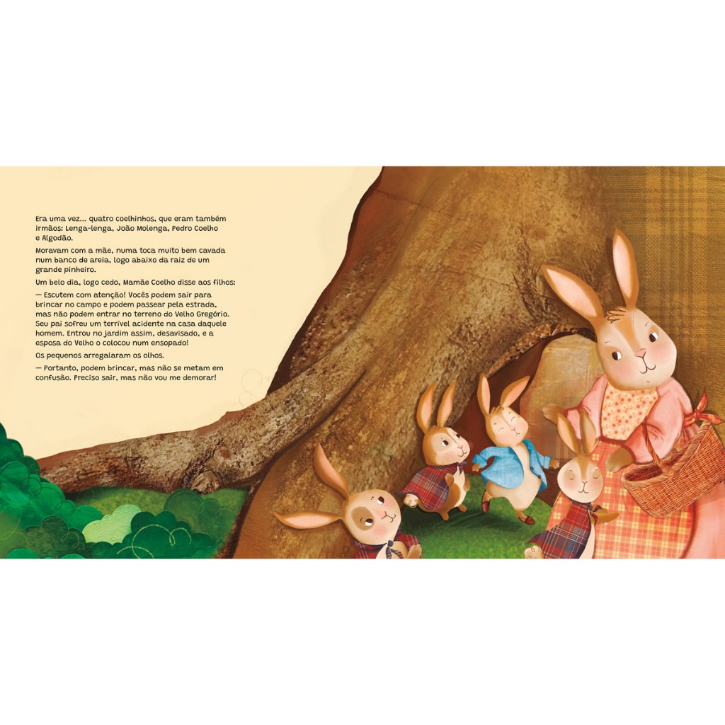 Mamãe Coelho avisou aos quatro filhos: Vocês podem sair para brincar no campo, mas não entrem no terreno do Velho Gregório! Lenga-lenga, João Molenga e Algodão, que eram coelhinhos obedientes, ouviram os conselhos da mamãe. Já Pedro Coelho... Se meteu em muitas confusões! Um conto clássico da escritora Beatrix Potter, nesta edição especial com tradução de Miguel Falabella e ilustrações de Bill Borges. Editora: Ciranda Cultural Edição: 1, 2021 Autor: Beatrix Potter Idioma: Português Páginas: 32 Dimensões: L 24.00 x A 26.00 x E 0.40 ISBN: 9786555007381