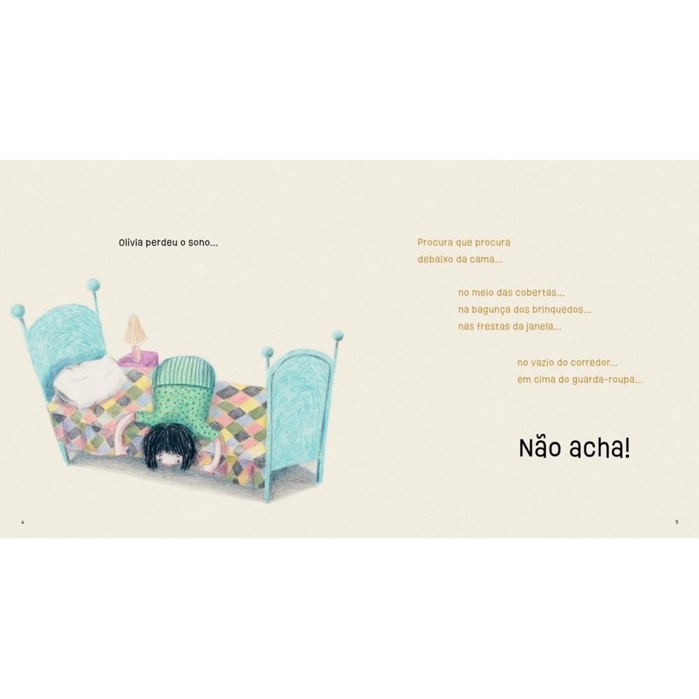 Lá em casa é assim: Quando a Olívia perde o sono, a gente acha poesia e histórias até o sono voltar. Certa noite, Olívia me pediu: Papai, me ajuda a procurar o sono que perdi?. Entrei na brincadeira, e procuramos pela casa. Pronto! A ideia do livro começou a morar na minha cabeça.Tempos depois, encontrei a Ionit, contei esta história pra ela e disse que sonhava em ver os carneirinhos nascerem dos seus traços delicados, leves e divertidos. Parece que o sono perdido virou um sonho achado e que agora é também seu. Editora: Ciranda na Escola Edição: 1, 2023 Autor: Giba Pedroza, Ionit Zilberman Ilustrador: Ionit Zilberman Idioma: Português Páginas: 32 Dimensões: L 24.00 x A 26.00 x E 0.33 ISBN: 9786553843196 Coleção: Não se aplica Linha Editorial: Ciranda na Escola - Literatura infantojuvenil Faixa Etária: + 4 anos Assuntos (tags): Histórias, Cantigas, Contagem, Sono, Hora de dormir BISAC: Literatura Infantil / Hora de Dormir & Sonhos Linha de Produto: Literatura infantil Encadernação: Brochura Acabamento: Laminação fosca Material: Papel